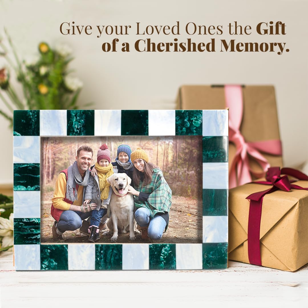- Design and Quality: This 4 inches wide 6 inches long Folkulture Picture Frame, is created from the highest-quality resin, and features a modern forest green and pale blue checkered design, ensuring strong durability and style making it a perfect cozy home decor choice, or a christmas gift.