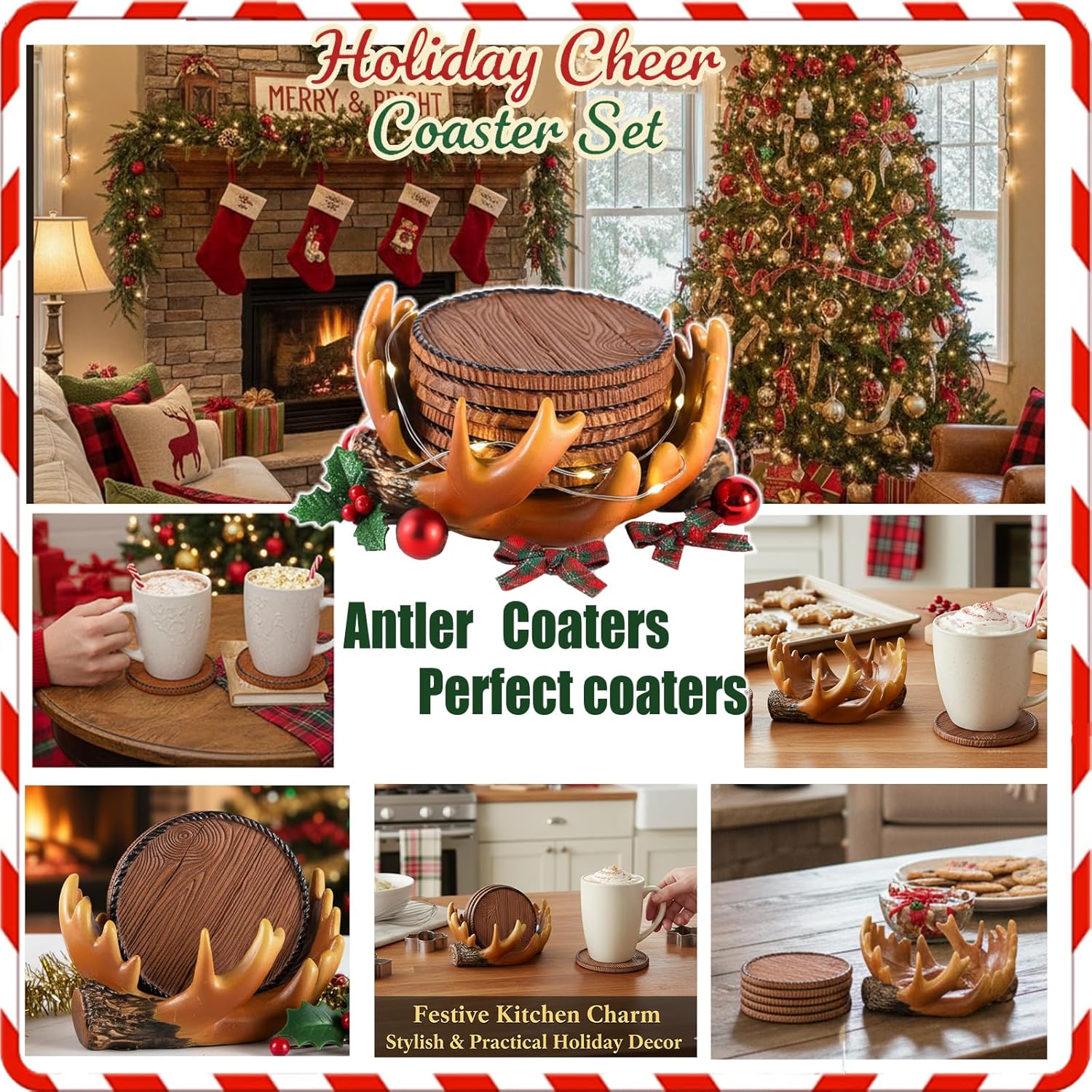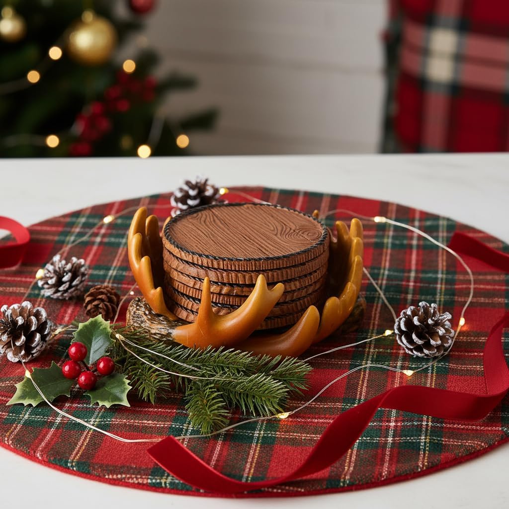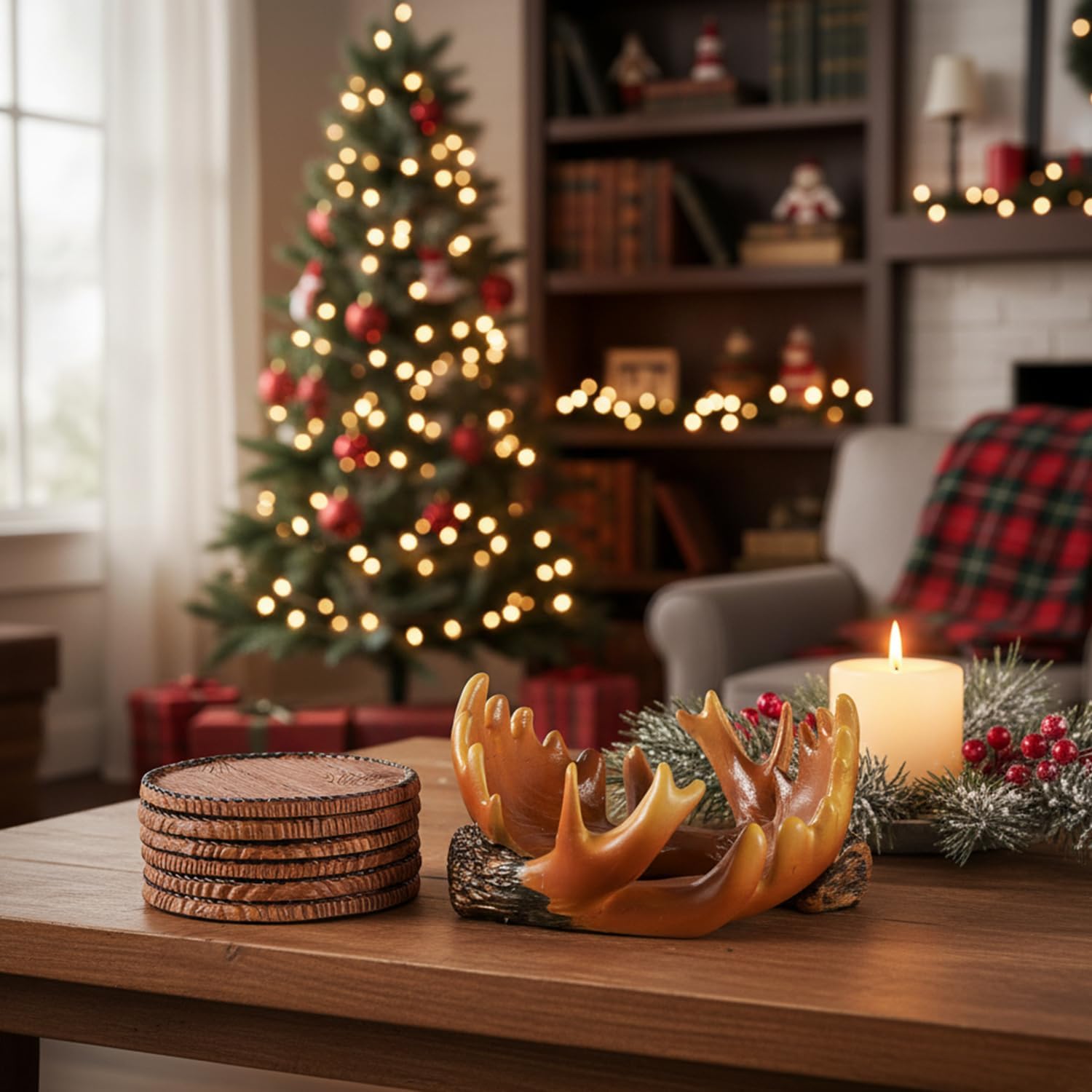 Deer Antler Coasters - 6 Full-Size Rustic Wooden Coasters | Non-Slip for Log Cabin, Hunting, Man Cave, Bar & Farmhouse Decor | Protect Furniture