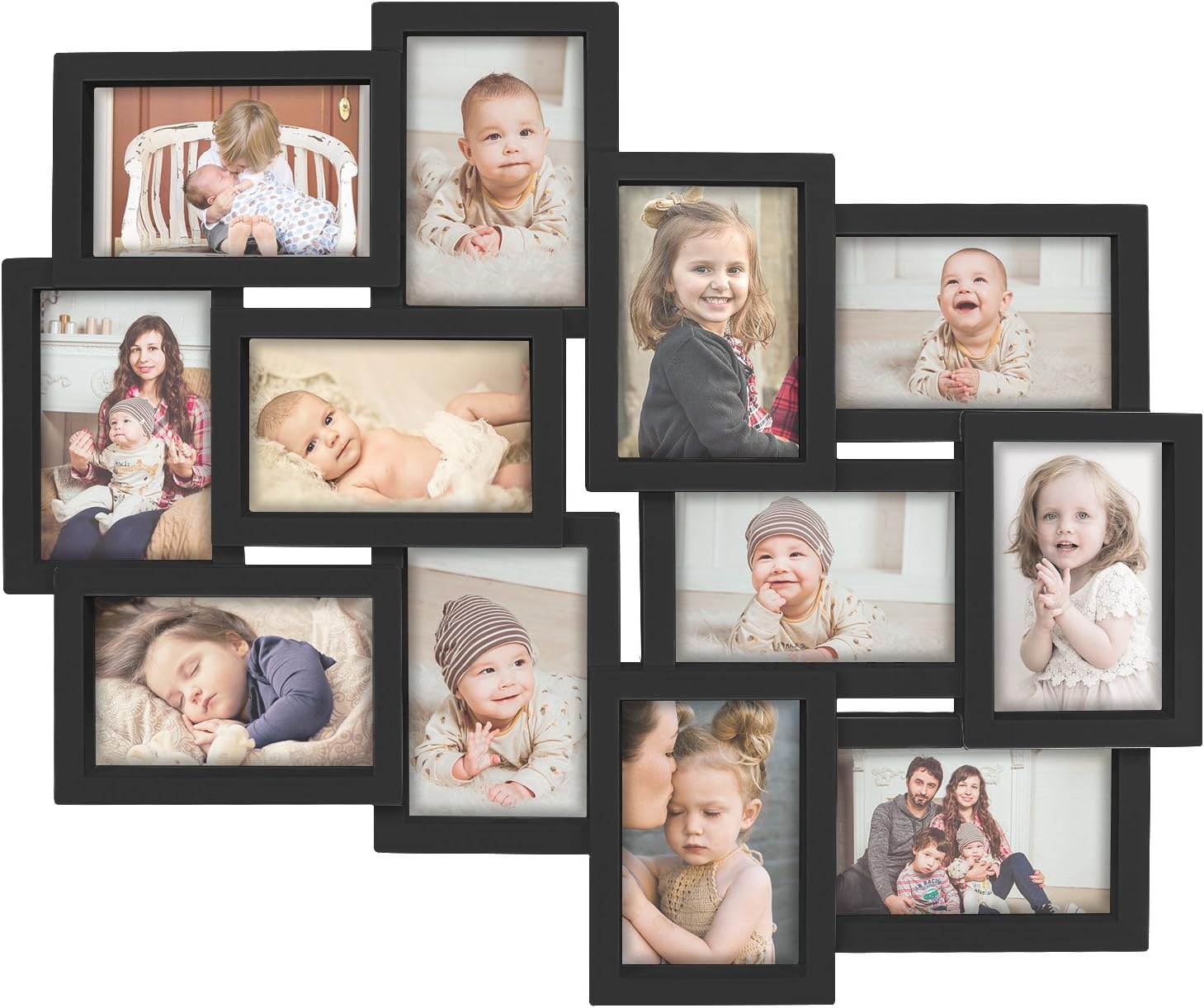 Jerry & Maggie 12 Opening Collage Picture Frame, Multi Picture Frame for Wall, 4x6 Inches, Plastic Wall Picture Frames for Living Room, No Assembly, Black