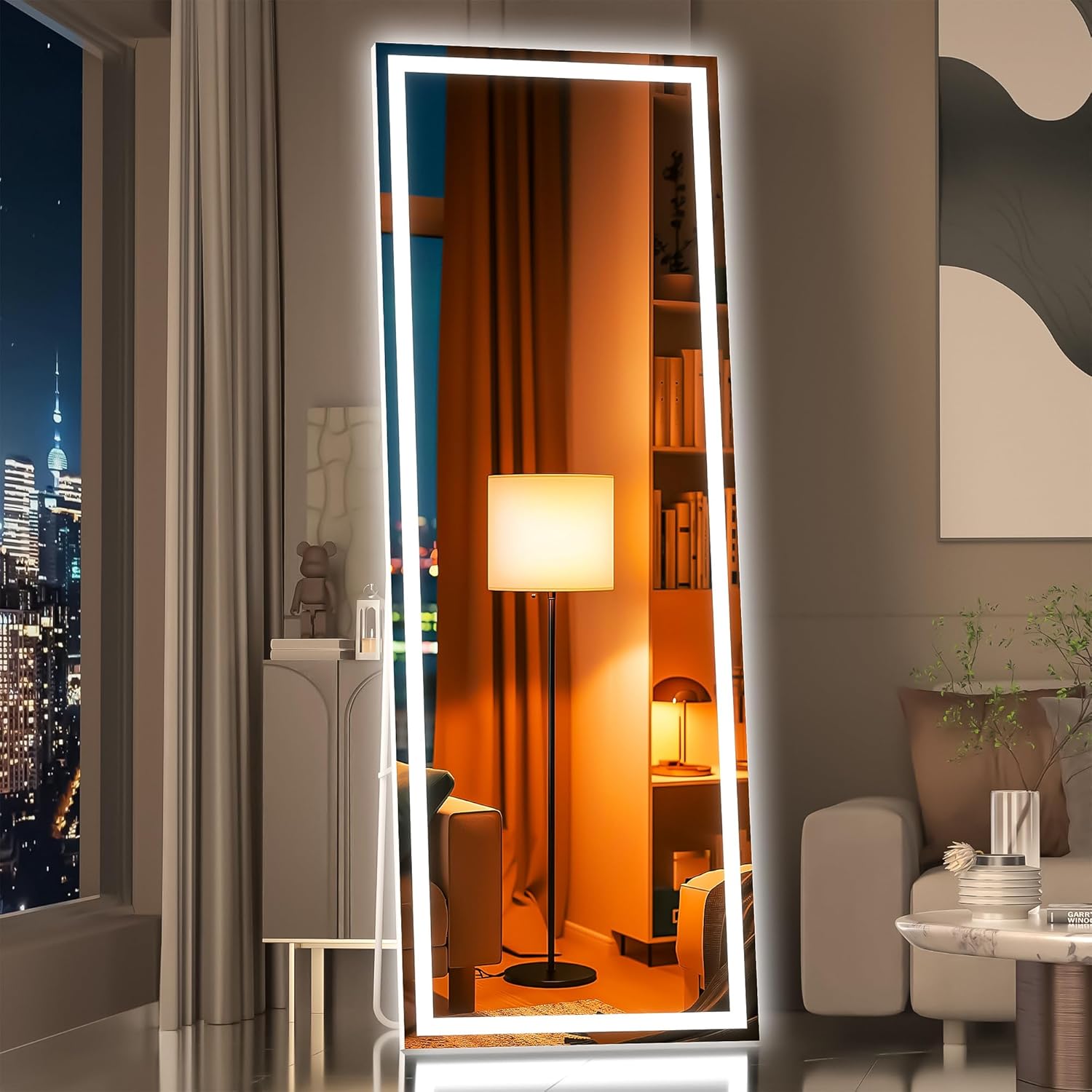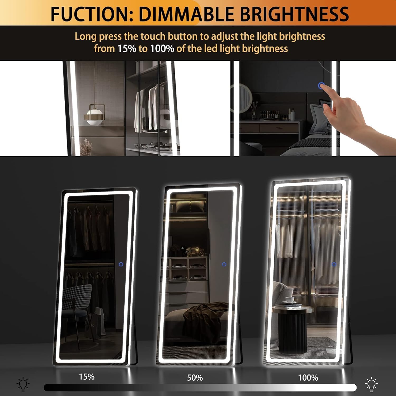 - 【Dimmable & 3 Color Temperature】This lighted full length mirror is multifunctional. You can press the button to change the color temperatures: Warm(3000K), natural (4000K) and white(6000K). You can also dim the brightness to your comfortable level. All these will be easily controlled by the touch button.