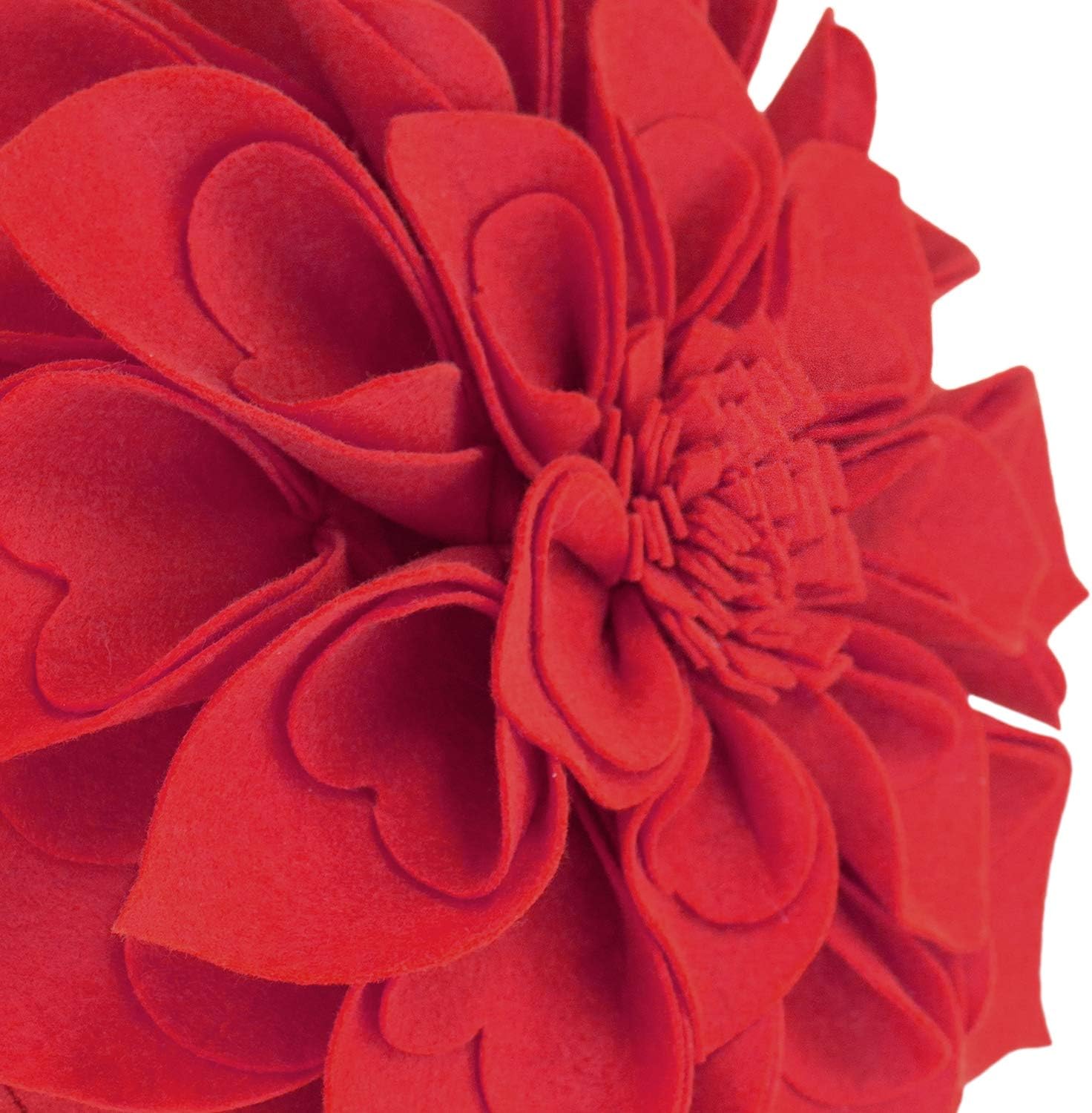 Fennco Styles Handmade 3D Heart-Shaped Petals Flower Decorative Throw Pillow Cover Only - 13" Round Red Floral Pillow Case for Couch, Home Décor and Holiday, Housewarming Gift