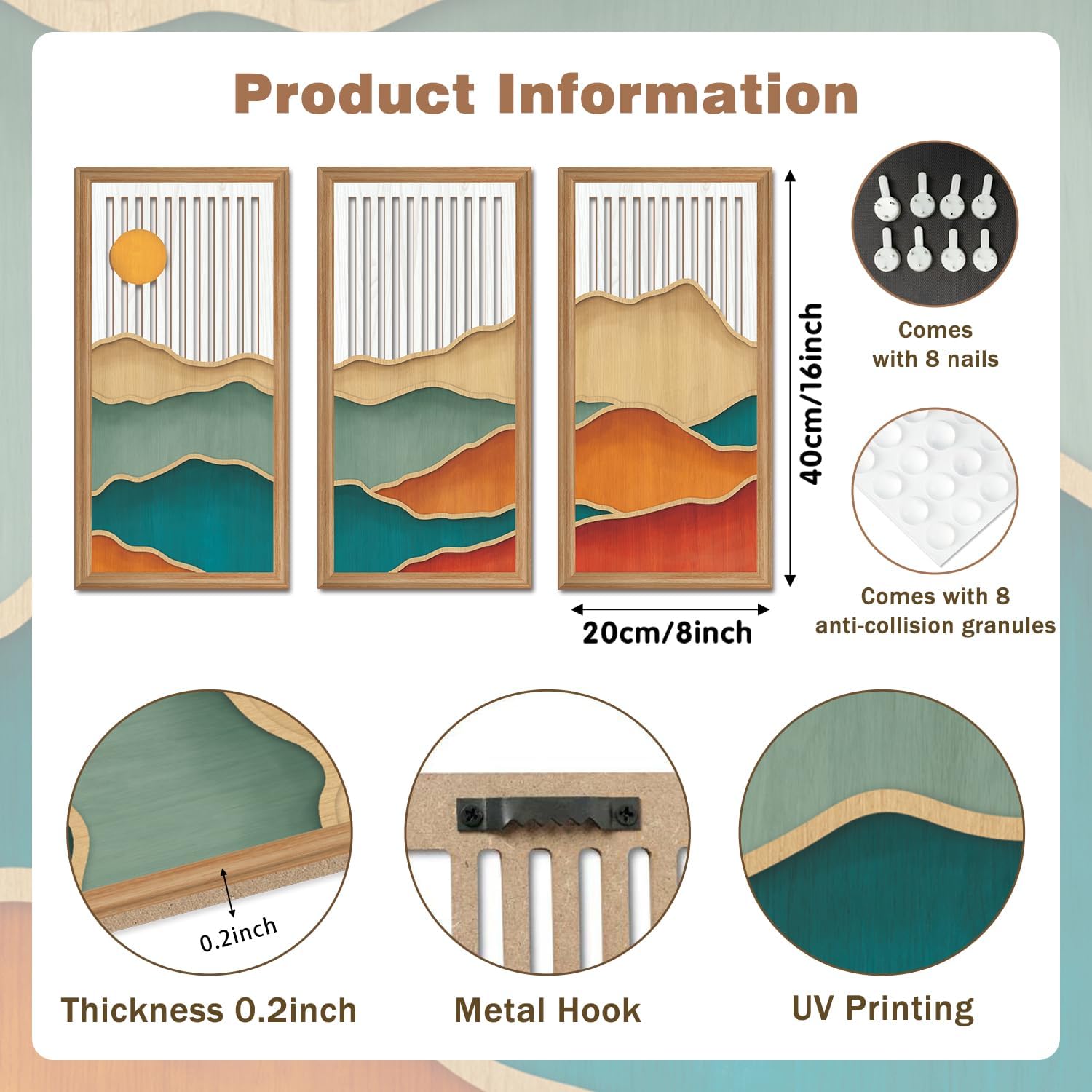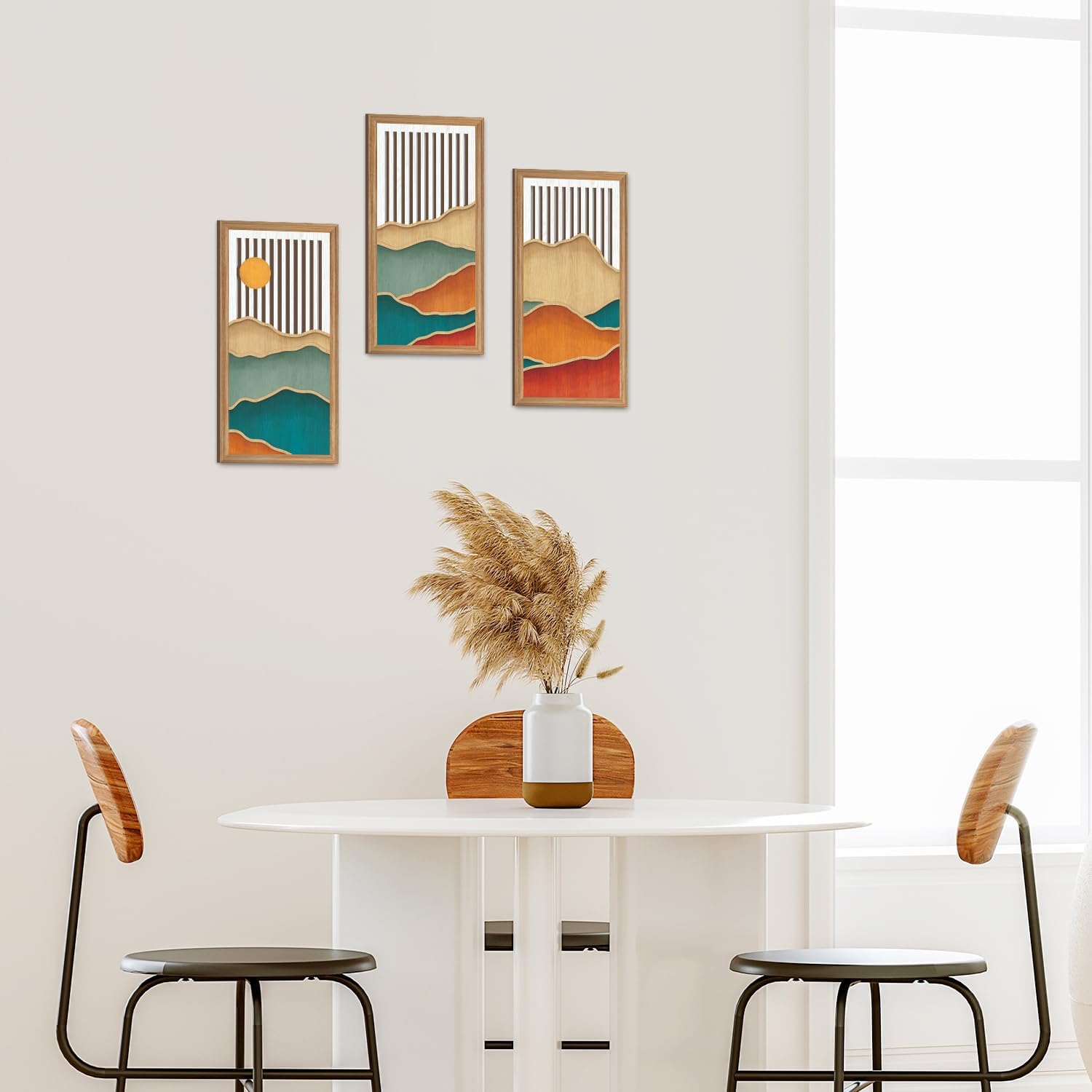 IARTTOP 3 Pcs Boho Mountain Wall Decor Modern Minimalist Wooden Artwork Bohemian Hanging Art Abstract Nature Landscape Wood Wall Art Decoration for Apartment Living Room 7.9 x15.8 Inch