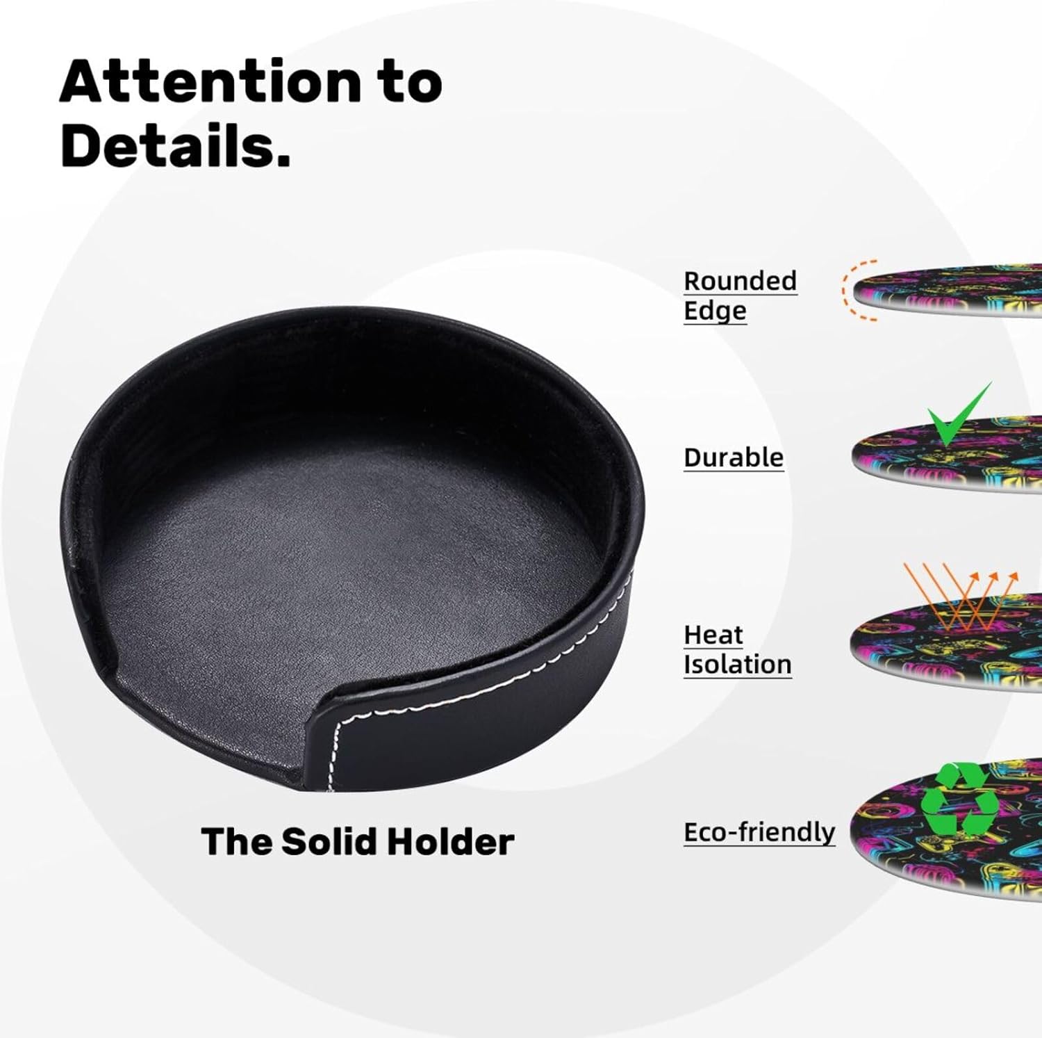 - Holder Included : Coasters Set Includes 6 Pieces Coasters And Coaster Holder, Neatly Stack Coasters In The Holder When Not In Use, Makes Coasters Look Better Organized, Also Make Your Desktop Tidier And Save Space.