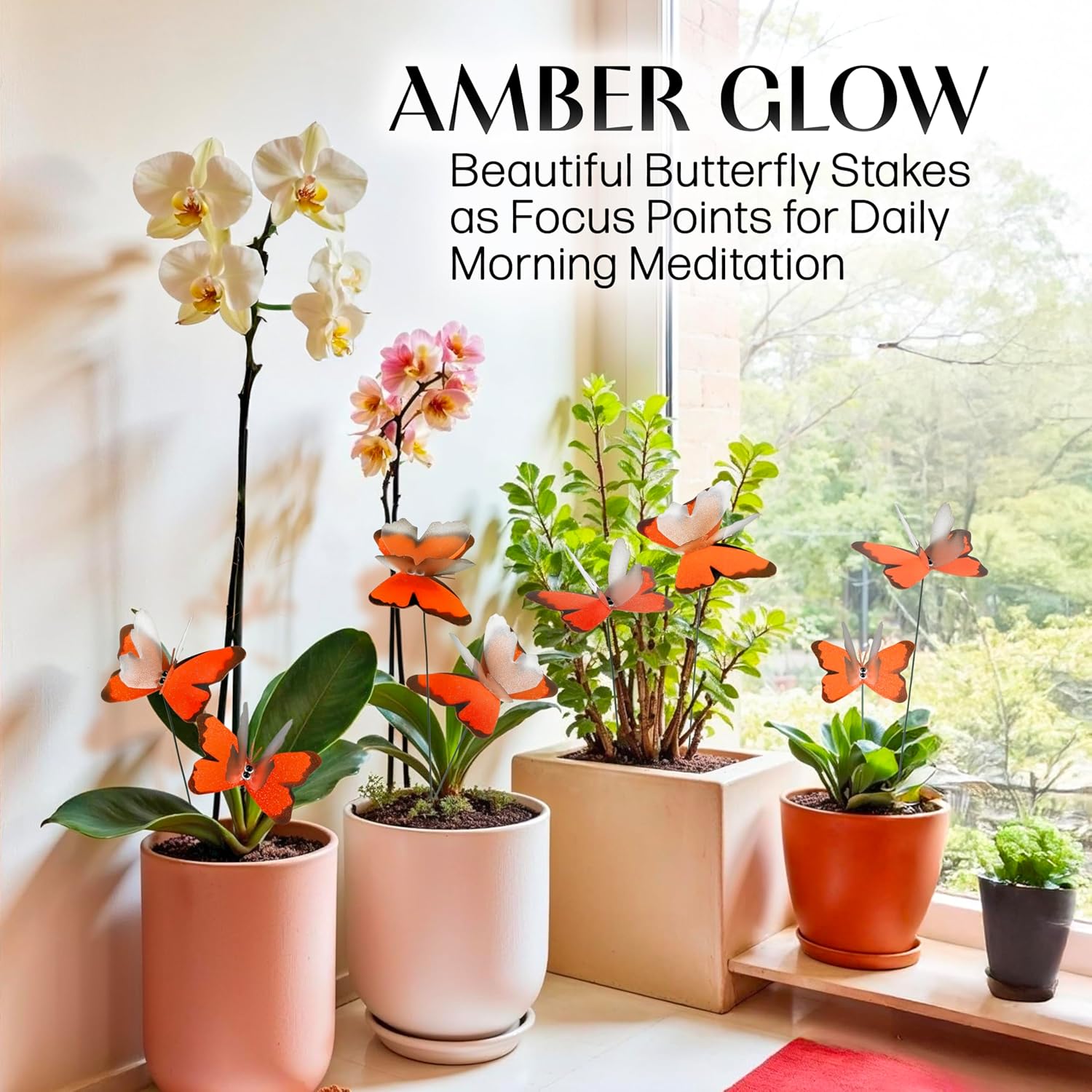 Handmade Butterfly Garden Stakes – Set of 7 Orange Decorative Butterflies Idea for Garden & Nature Lovers – Outdoor & Indoor Garden Decor – Air Aquarium Handmade by Kushner