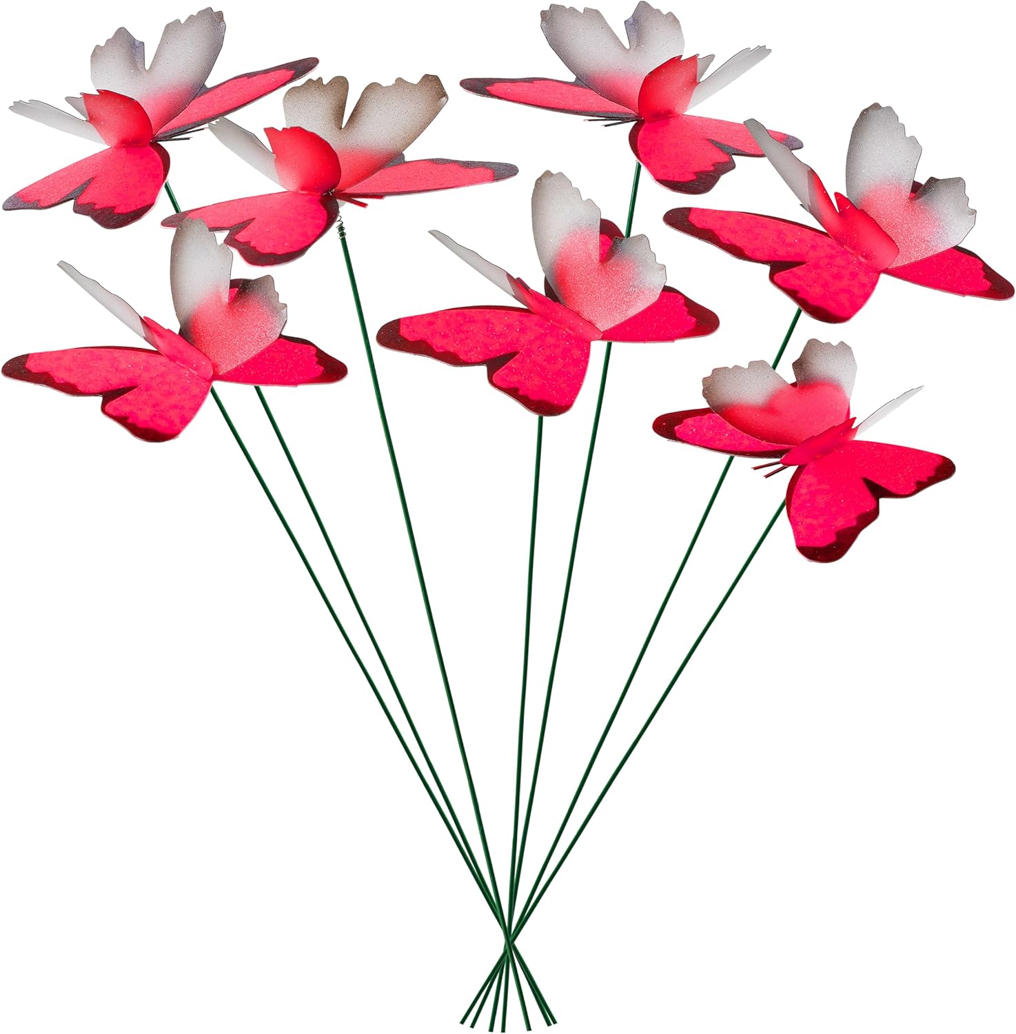 Handmade Butterfly Garden Stakes – Set of 7 Glowing Pink Decorative Butterflies Idea for Garden & Nature Lovers – Outdoor & Indoor Garden Decor – Air Aquarium Handmade by Kushner