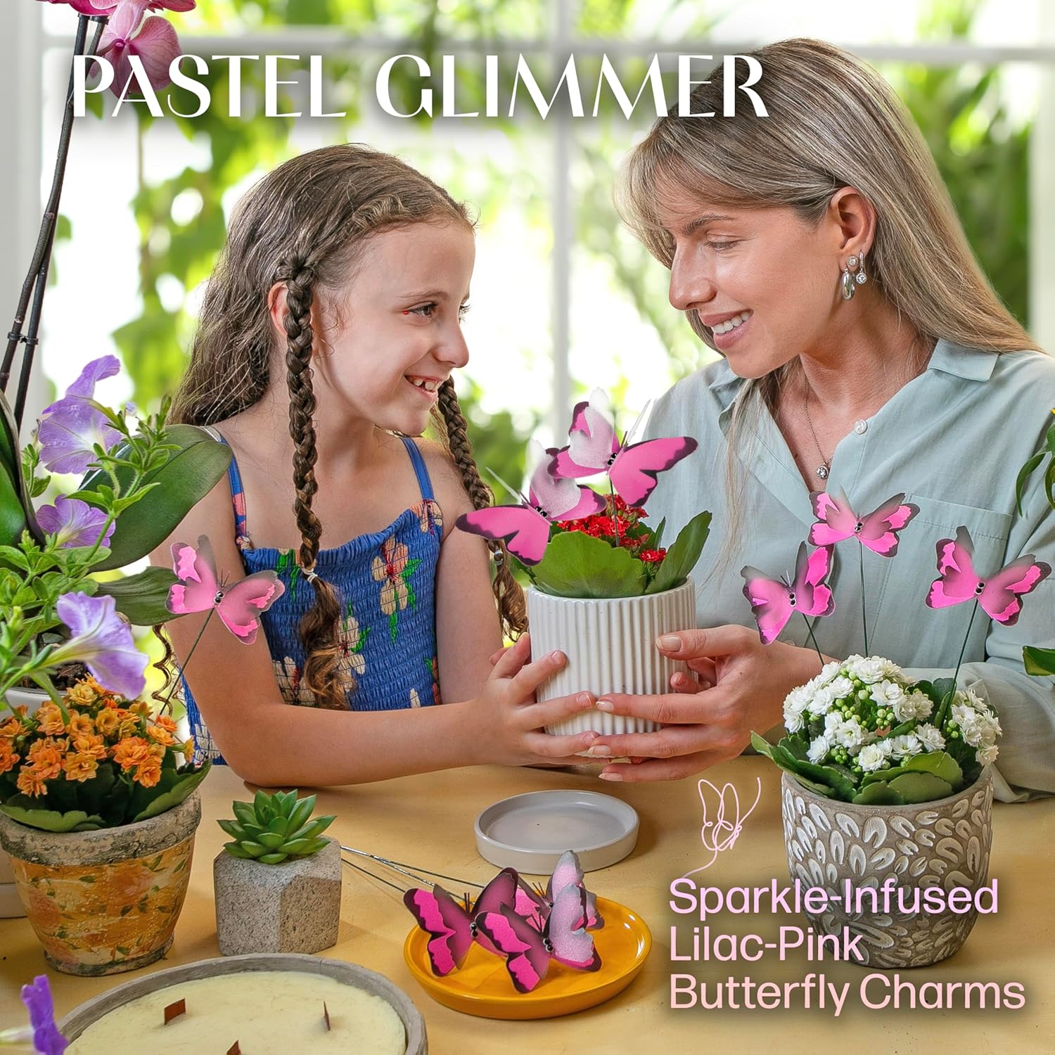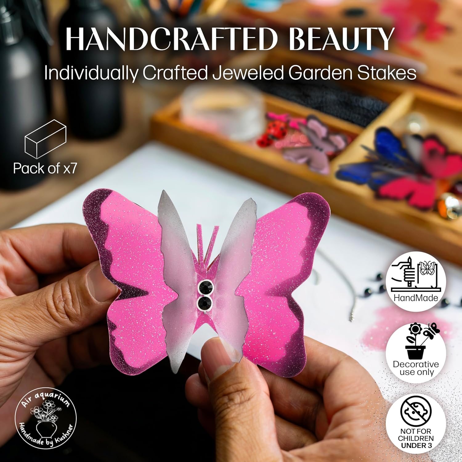 Handmade Butterfly Garden Stakes – Set of 7 Lilac Pink Decorative Butterflies Idea for Garden & Nature Lovers – Outdoor & Indoor Garden Decor – Air Aquarium Handmade by Kushner