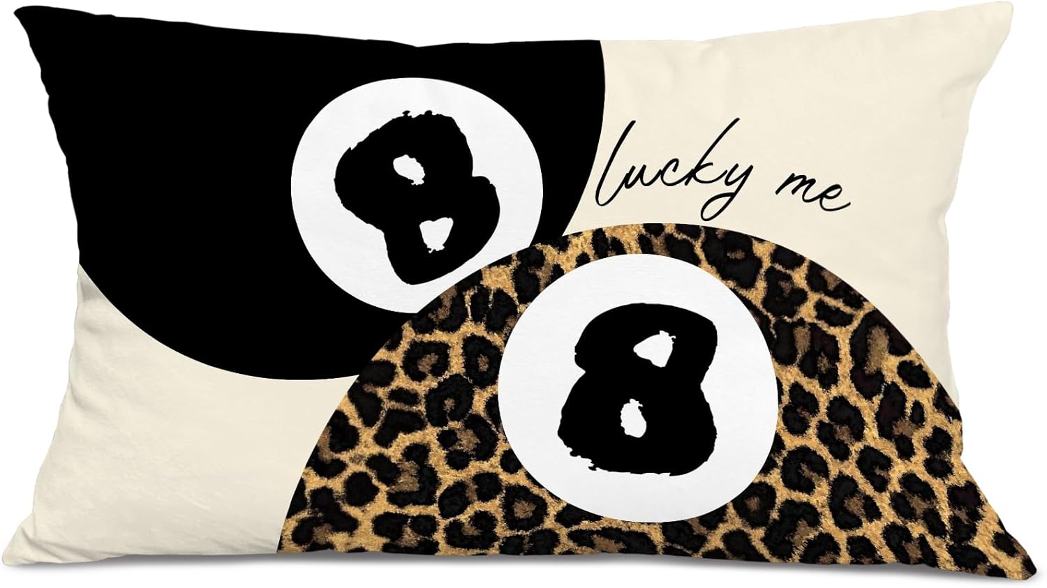 Coquette Pink Bow Leopard Print Lips Lucky 8 Ball Throw Pillow Covers 20x12, Cheetah Print Room Decor, Funky Y2K Leopard Decorative Pillow Covers for Girls Room Dorm Apartment Home