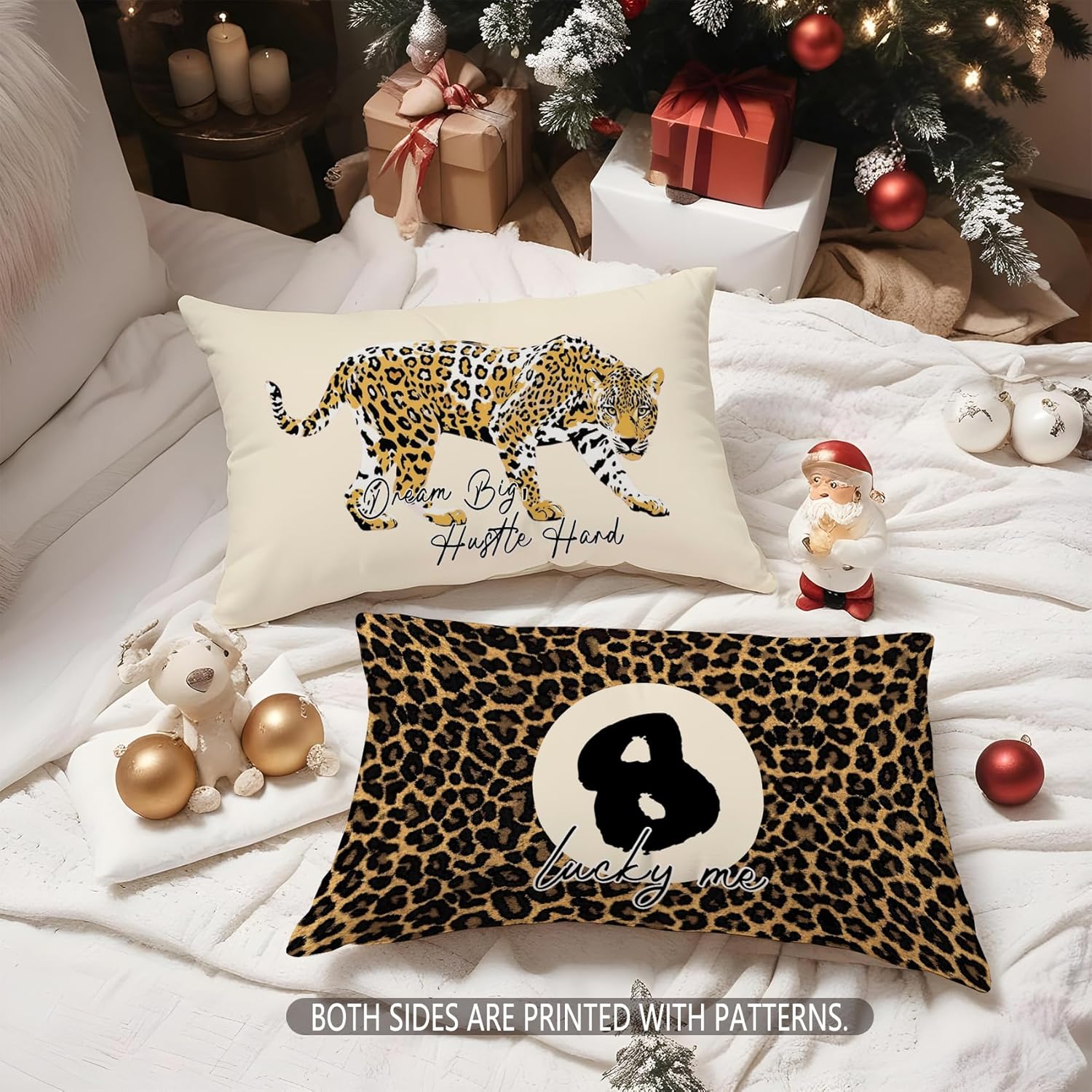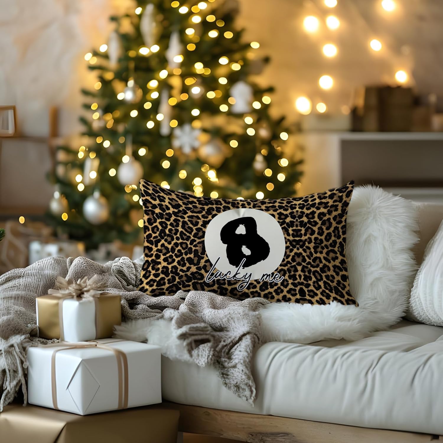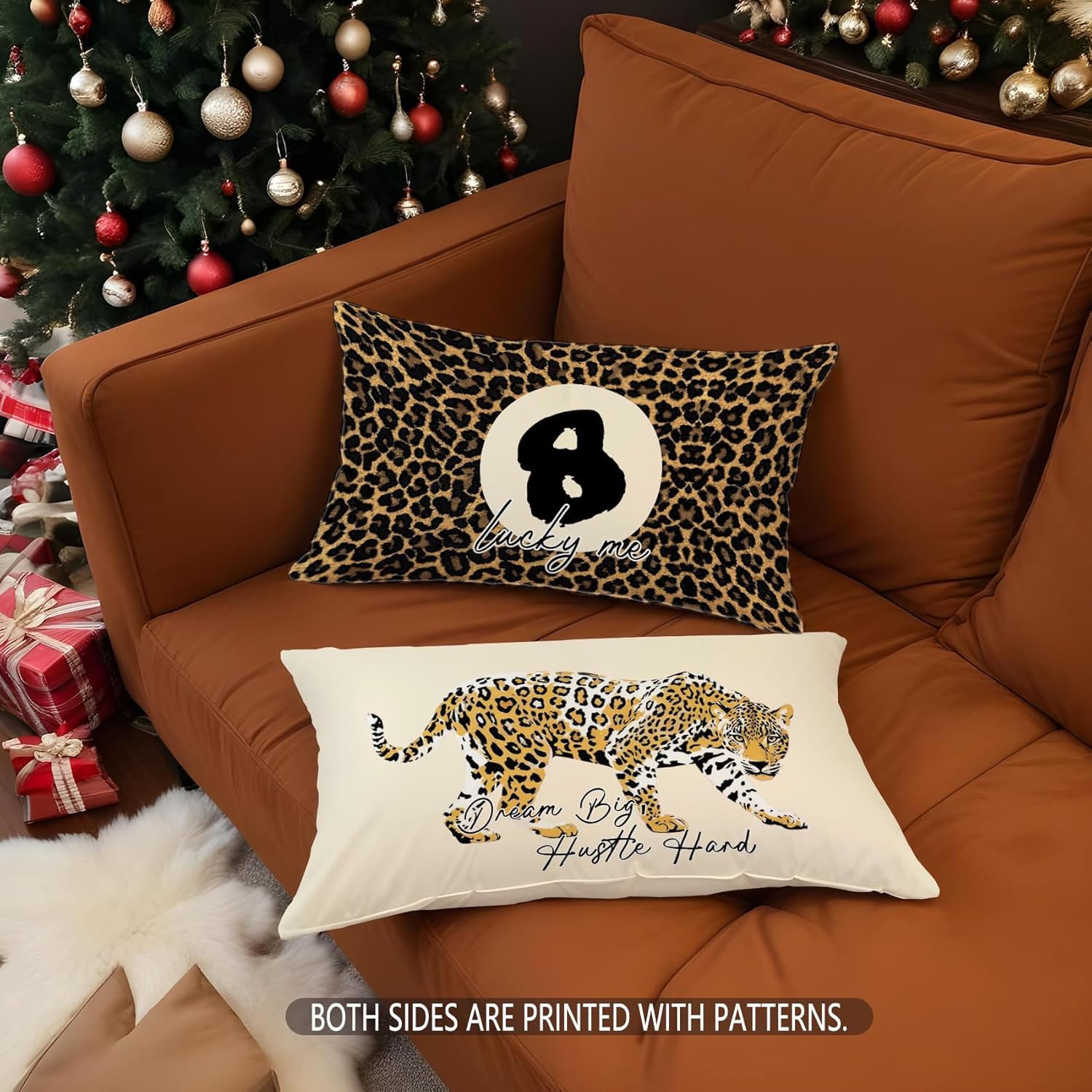 Coquette Pink Bow Leopard Print Lips Lucky 8 Ball Throw Pillow Covers 20x12, Cheetah Print Room Decor, Funky Y2K Leopard Decorative Pillow Covers for Girls Room Dorm Apartment Home,Set of 2