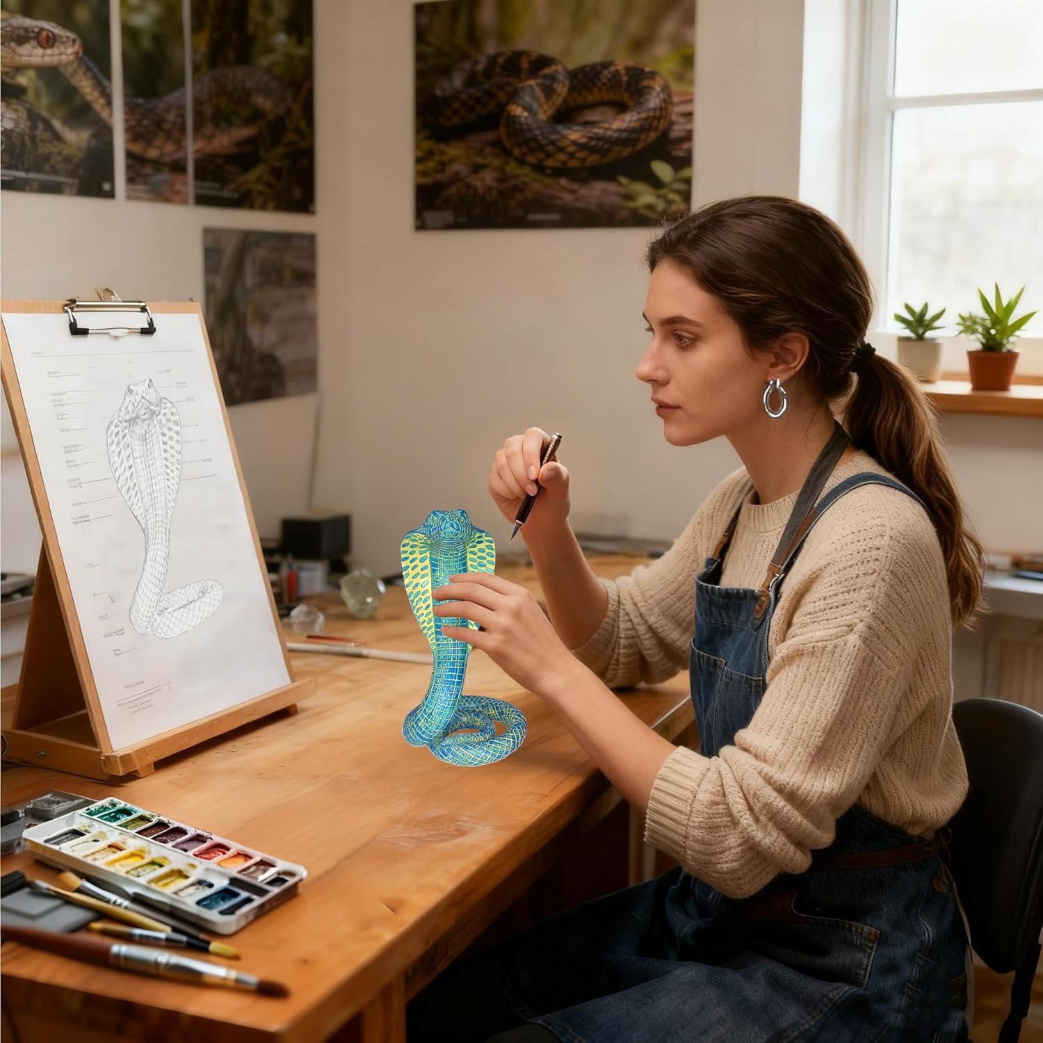 - [ Compact Desktop Size (17cm/6.69in Tall)]: Measuring 6.69inches (17cm) in height and 4.33 inches (11cm) in length, this cobra figurine fits seamlessly on desks, shelves, and tabletops. Its space-saving design enhances office decor, study nooks, or living room displays,adding character without taking up too much space.