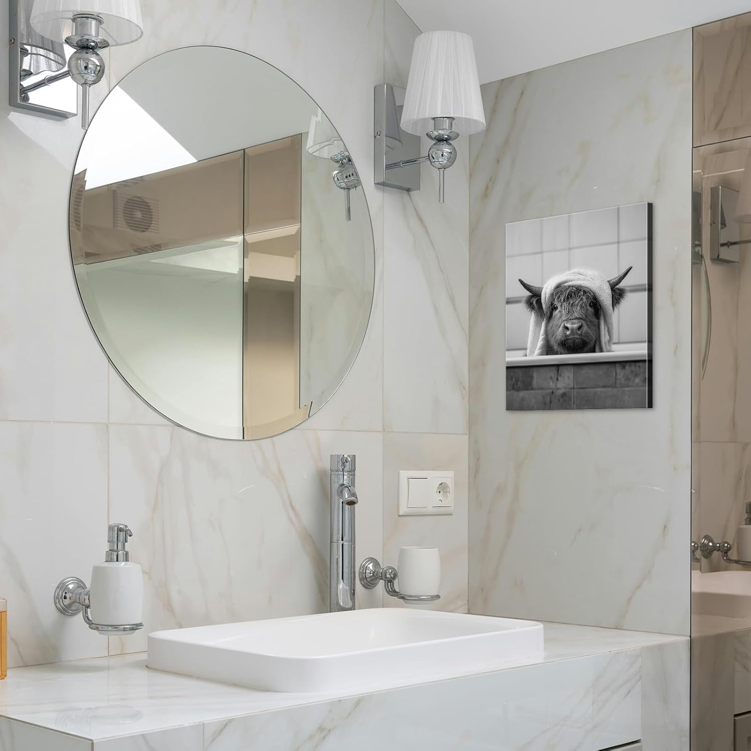 - Best Decor Idea: It is a wonderful highland cow canvas for bathroom. Also highland cow canvas wall art can be a great present for friends, relatives, colleague or Children's Day, Thanksgiving Day, ect.