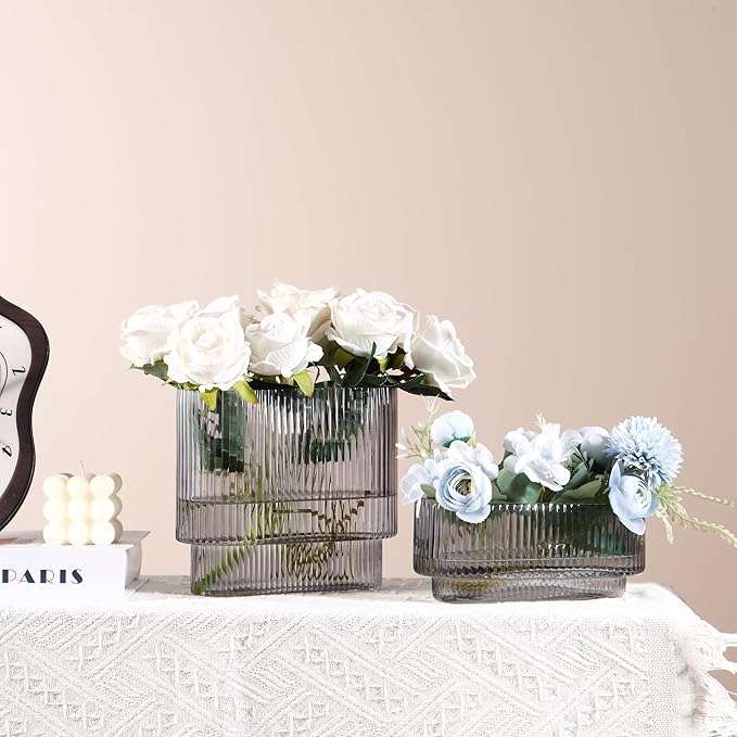 - Stylish Ribbed Vase for Home Decor: This elegant set includes two ribbed vases in different sizes, perfect for displaying bouquets of varying scales. Add a touch of sophistication to any space—ideal for dining tables, desks, mantles, and shelves.