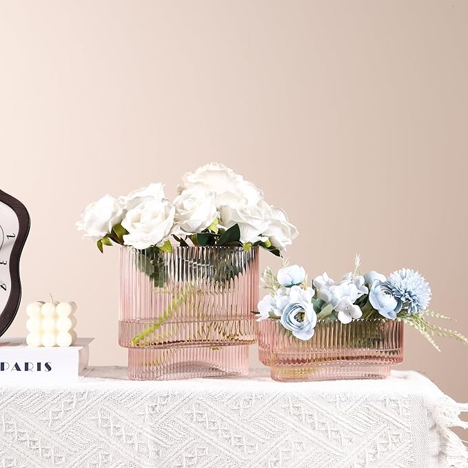 - Stylish Ribbed Vase for Home Decor: This elegant set includes two ribbed vases in different sizes, perfect for displaying bouquets of varying scales. Add a touch of sophistication to any space—ideal for dining tables, desks, mantles, and shelves.