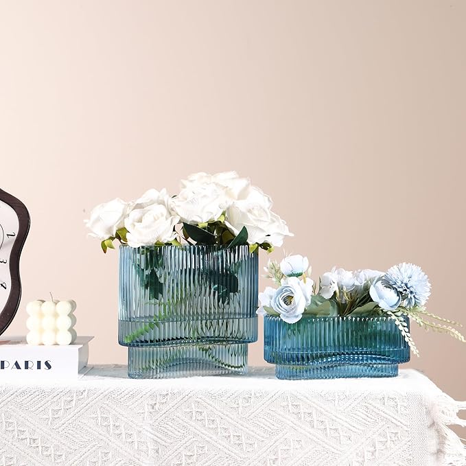 - Stylish Ribbed Vase for Home Decor: This elegant set includes two ribbed vases in different sizes, perfect for displaying bouquets of varying scales. Add a touch of sophistication to any space—ideal for dining tables, desks, mantles, and shelves.