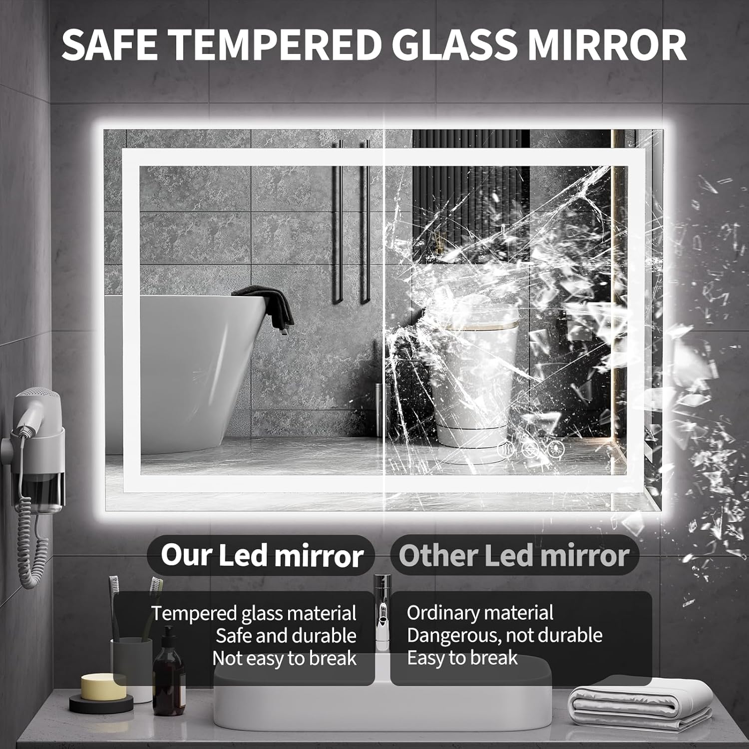 - 【Tempered Glass, Shatter-Proof】Adopted explosion-proof tempered glass and advanced coating process, our bathroom mirror HD imaging is real and clear, not deformed and blurred. Explosion-proof and shatter-proof, waterproof and rust-proof, safe to use, long-lasting and durable, not easy to break and splash, to protect the user's personal safety.