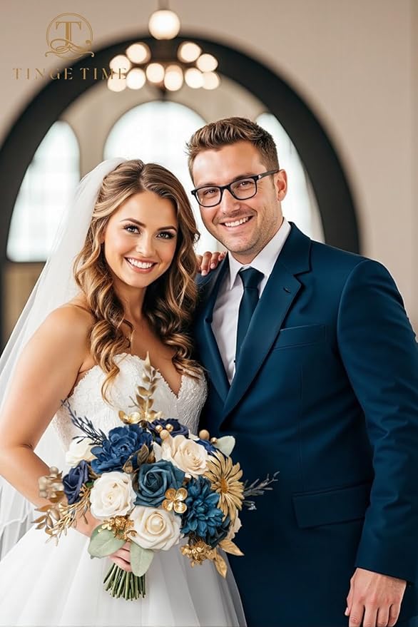 TINGE TIME Roses Artificial Flowers Blue Faux Flowers Bulk for DIY Bridal Wedding Bouquets Baby Shower Centerpiece Table Home Decorations(Navy Blue)