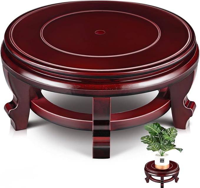 Yoiemivy 10 Inch Wooden Plant Stand Indoor Flower Pot Base Vase Display Shelf Chinese Fishbowl Planter Stands for Display Oriental Style Plant Pot Pedestal Stand