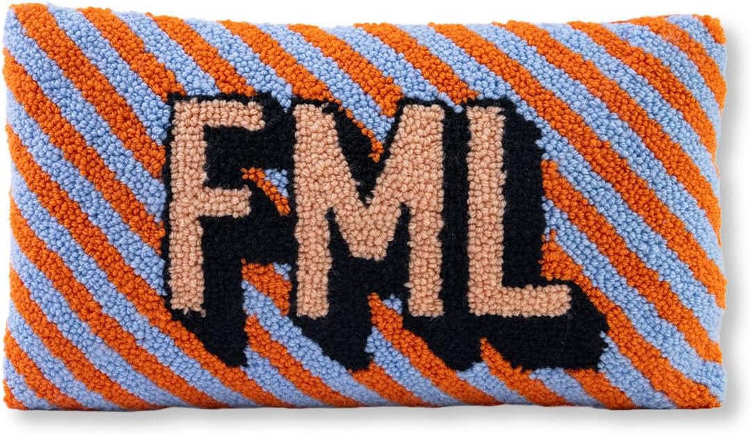 FURBISH Hook Decorative Throw Pillow - FML - 9"x16" - Small Embroidered Designer Pillow for Living Room, Couch, Sofa, Chair & Bed - Eclectic Home Decor
