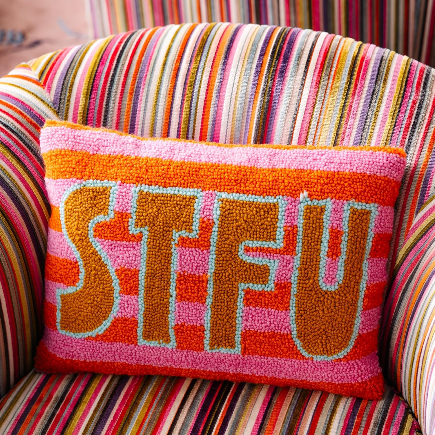 FURBISH Hook Decorative Throw Pillow - STFU - 12"x16" - Small Embroidered Designer Pillow for Living Room, Couch, Sofa, Chair & Bed - Eclectic Home Decor