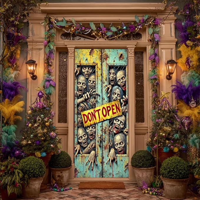 2D flat Zombie Don't Open Halloween Door Decorations Scary Door Banner Indoor Outdoor Horror Door Cover for Haunted House 71x35 Inch