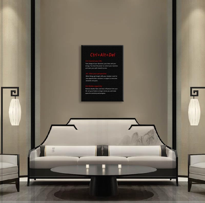 Inspirational Quote Canvas Wall Art Motivational Ctrl Alt Del Painting Poster Inspiring Entrepreneur Picture Prints Artwork Decor Framed for Home Office Living Room Ready to Hang[18''W X 24''H]