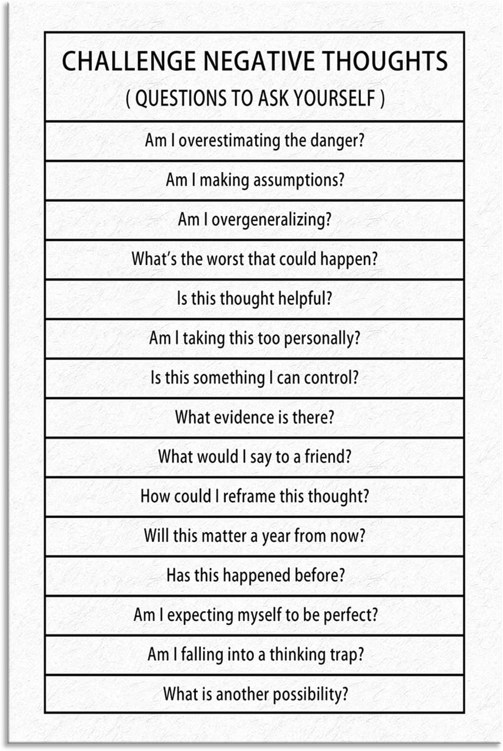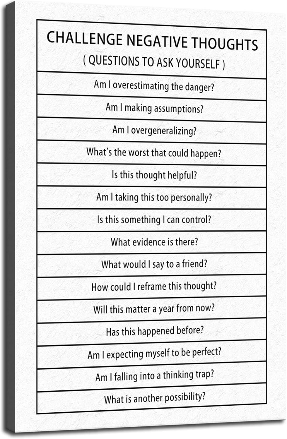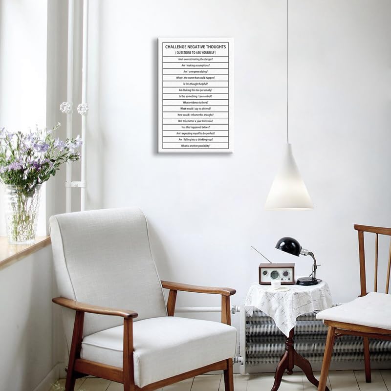 Inspirational Canvas Wall Art Challenge Negative Thoughts Picture Inspiring Poster Print Artwork Motivational Positive Quote Painting Office Classroom Modern Home Wall Decor Framed[12''W X 18''H]