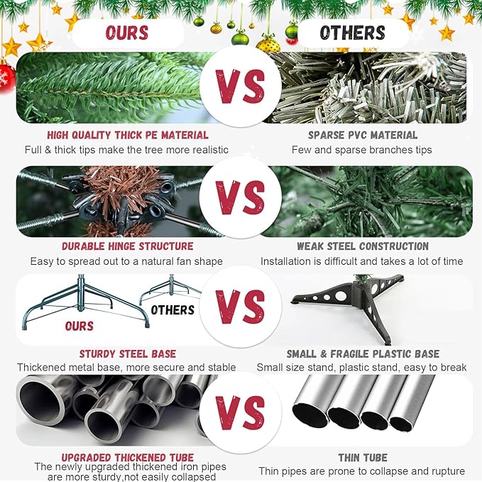 - ๐๐๐ซ๐๐ฆ๐ข๐ฎ๐ฆ ๐๐ง๐ข๐ช๐ฎ๐ ๐๐ก๐ซ๐ข๐ฌ๐ญ๐ฆ๐๐ฌ ๐๐ซ๐๐: Standing out from standard options, this refined 5ft Douglas fir Christmas tree is crafted from high-quality PE/PVC blend materials and features 502 robust branch tips for a lush, realistic appearance that rivals natural pre-lit Christmas trees. Designed to be durable, non-allergenic, odorless, and fade-resistant, its sturdy branches easily support stockings, bells, and other festive ornaments.