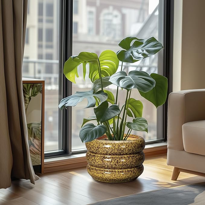 - Charming Layered Design: This ceramic planter blends practicality and modern style, offering a beautiful look while providing your plants with an ideal space to grow
