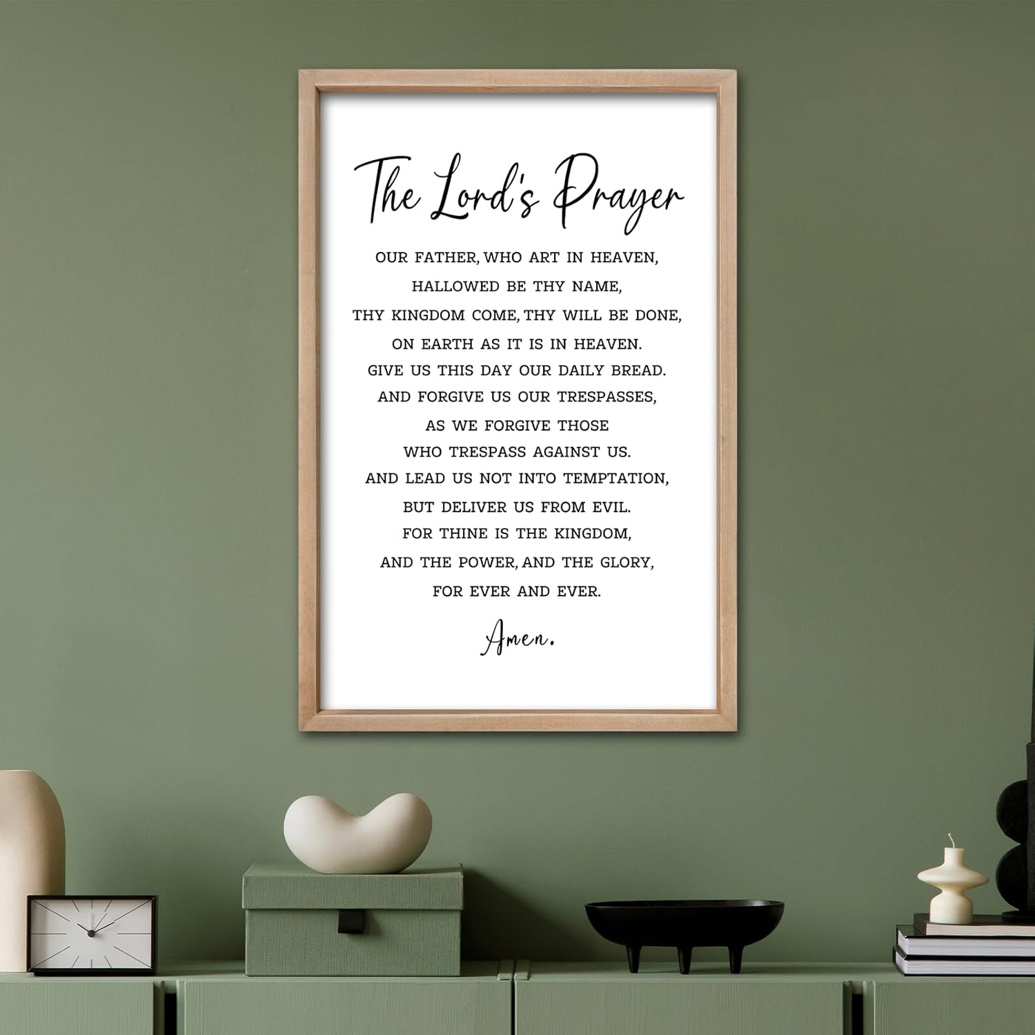 comurdyo Christian Wall Art The Lords Prayer Rustic Bible Verse Wall Decor 16"×11" Our Father Prayer Inspirational Positive Religious Saying Sign God Jesus Scripture Print Hanging (Wood)