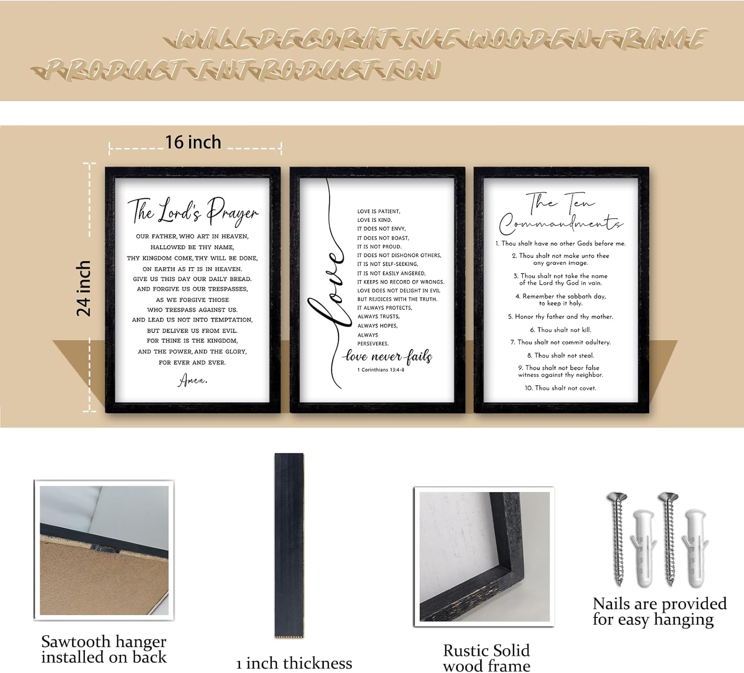 comurdyo Christian Bible Verse Wall Art 24"×16" Set of 3 Positive Religious Minimalist Quotes Sign for Rustic God Jesus Christ Prayer Inspirational Catholic Scripture Decor Wood Framed Hanging (Black)
