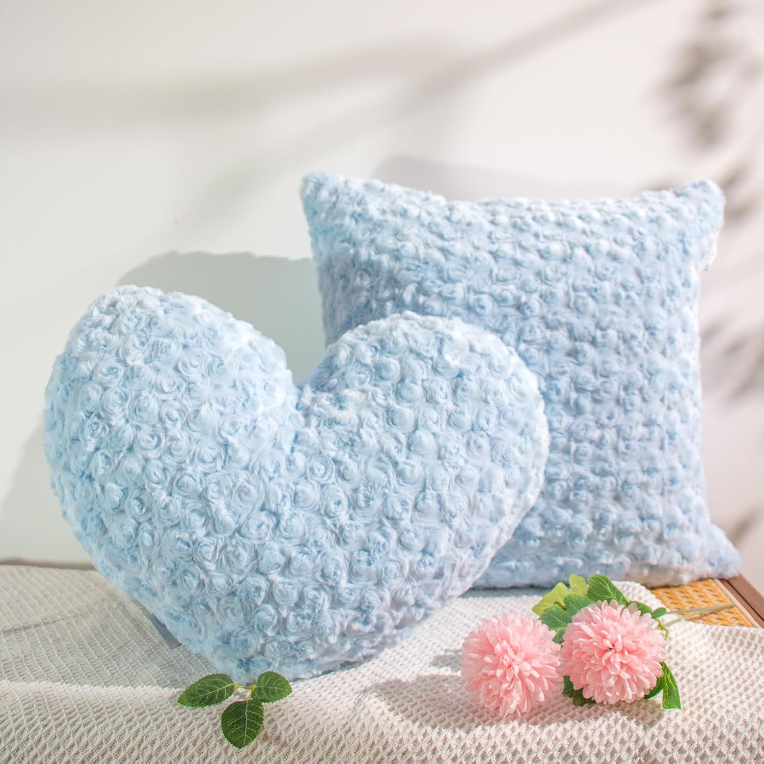 Blue Heart Shaped Throw Pillow – 600g Faux Rabbit Fur + Plush 6D PP Cotton – 16"x14" Decorative Cushion