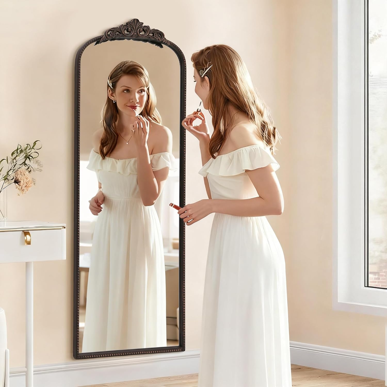 - 【Classical Design】This full length mirror exudes an antique allure, featuring ornate, baroque-inspired details and a stylishly distressed adornment on the top. With its vintage-inspired charm, it adds a touch of timeless beauty to your decor.