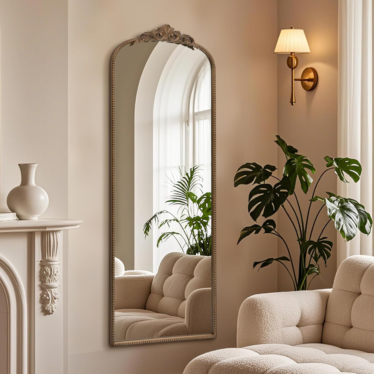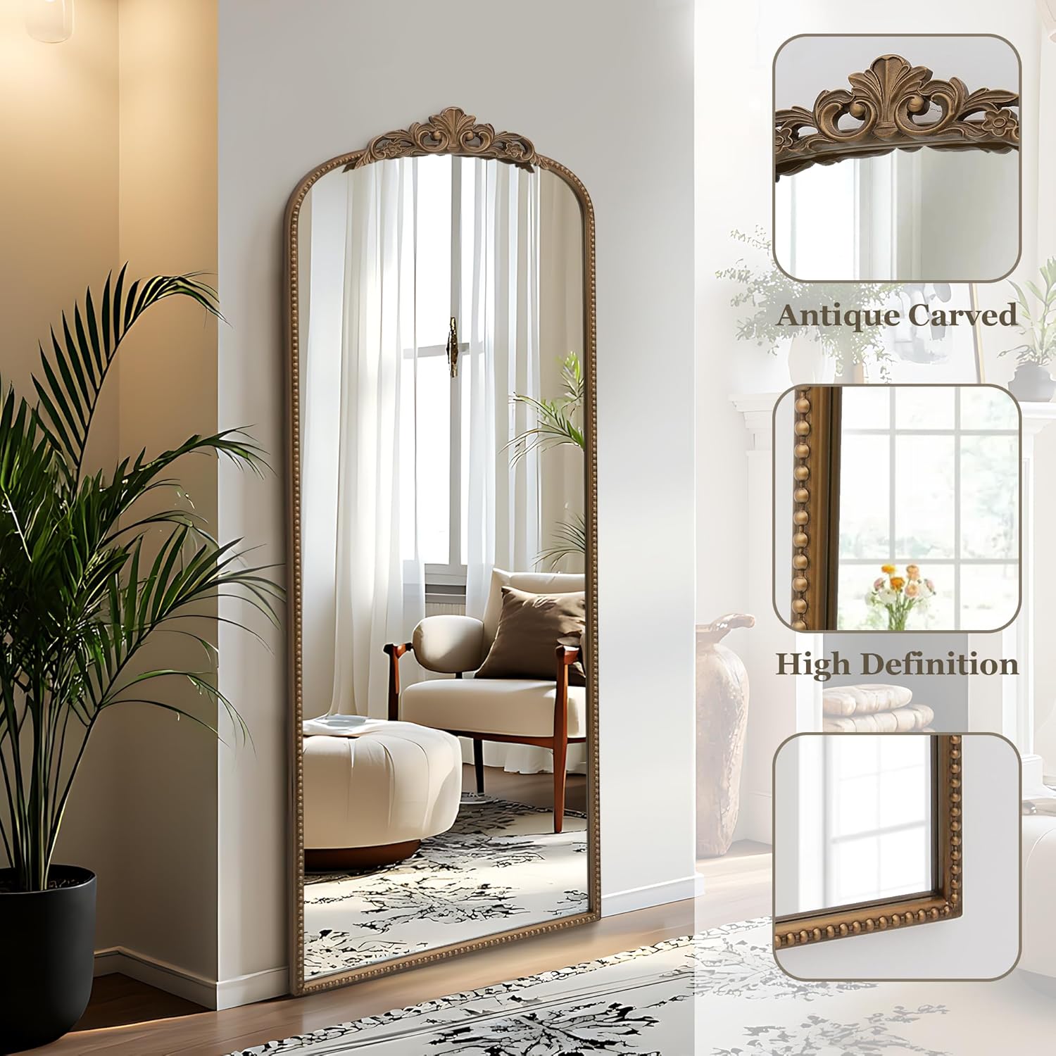 - 【Classical Design】This full length mirror exudes an antique allure, featuring ornate, baroque-inspired details and a stylishly distressed adornment on the top. With its vintage-inspired charm, it adds a touch of timeless beauty to your decor.