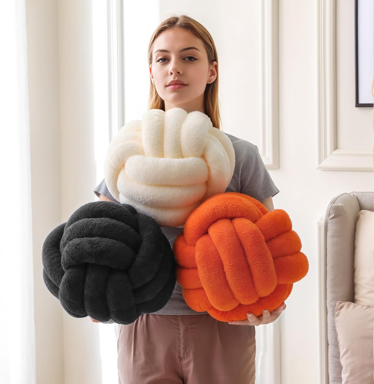 Knot Pillow Ball Plush - Decorative Throw Pillows for Bed Stress Relief, Round Knot Cushion for Sofa Decor Pet Toy, Grey 12 inch
