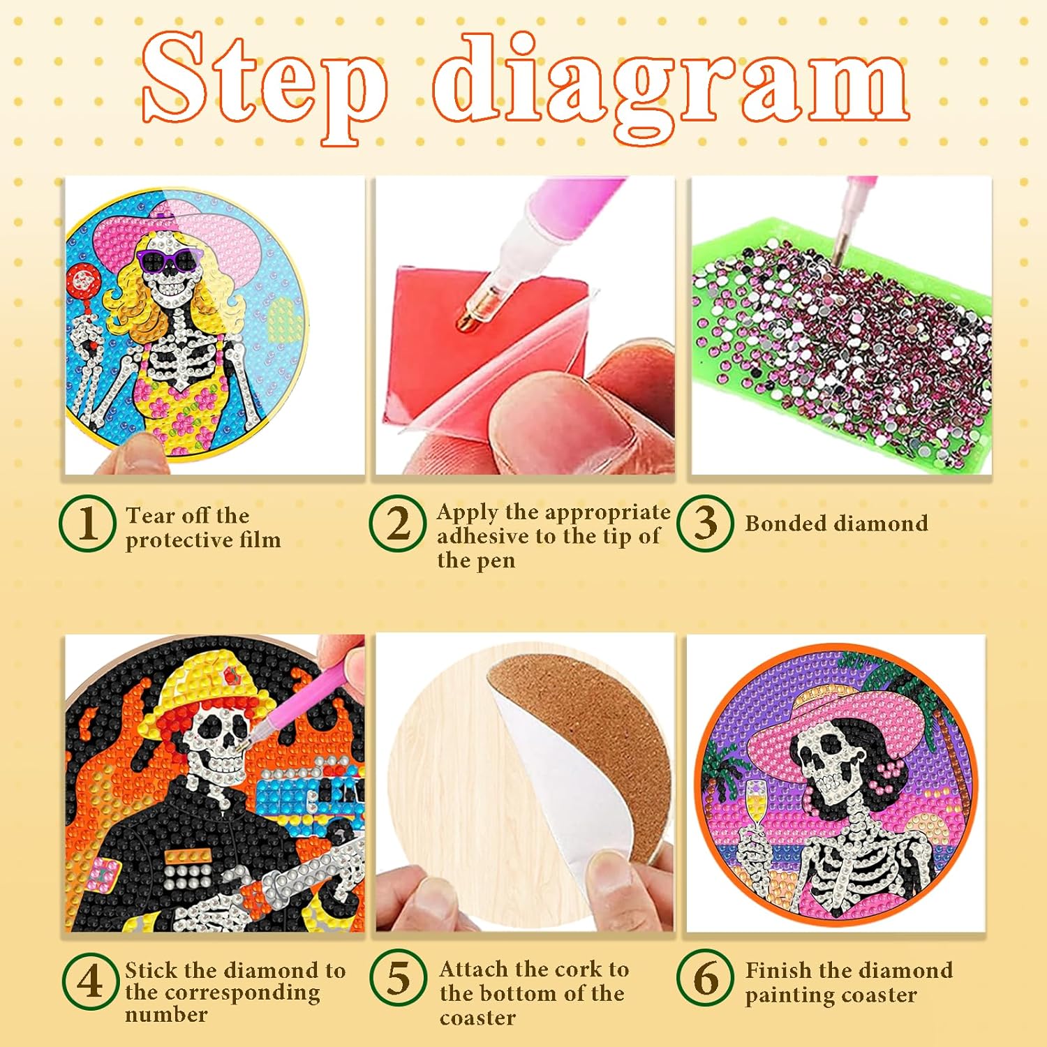 - Easy and Engaging for All Ages: Suitable for beginners and experienced crafters, this diamond painting kit delivers a relaxing and rewarding experience. Simply follow the numbered guide to apply diamonds to the coasters, and add the stickable cork bases for a polished finish