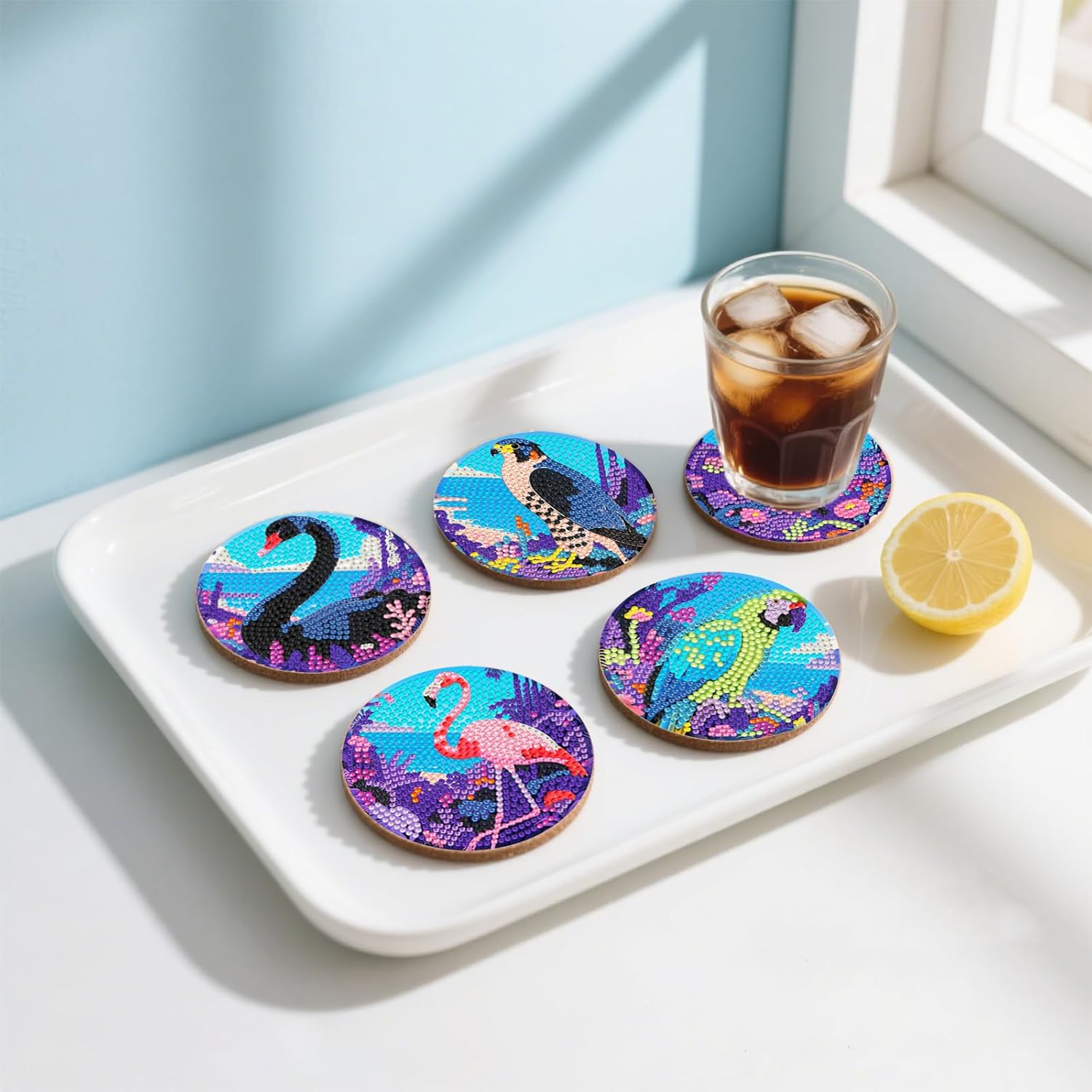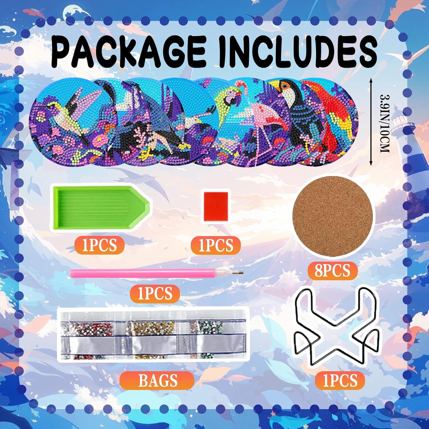 DOZEEZOP 8 PCS Animal Diamond Art Coasters Kit, Bird 5D Diamond Painting Coasters with Holder, Fall Small Diamond Art Kits for Adults Beginners, Diamond Dots Arts and Crafts Supplies