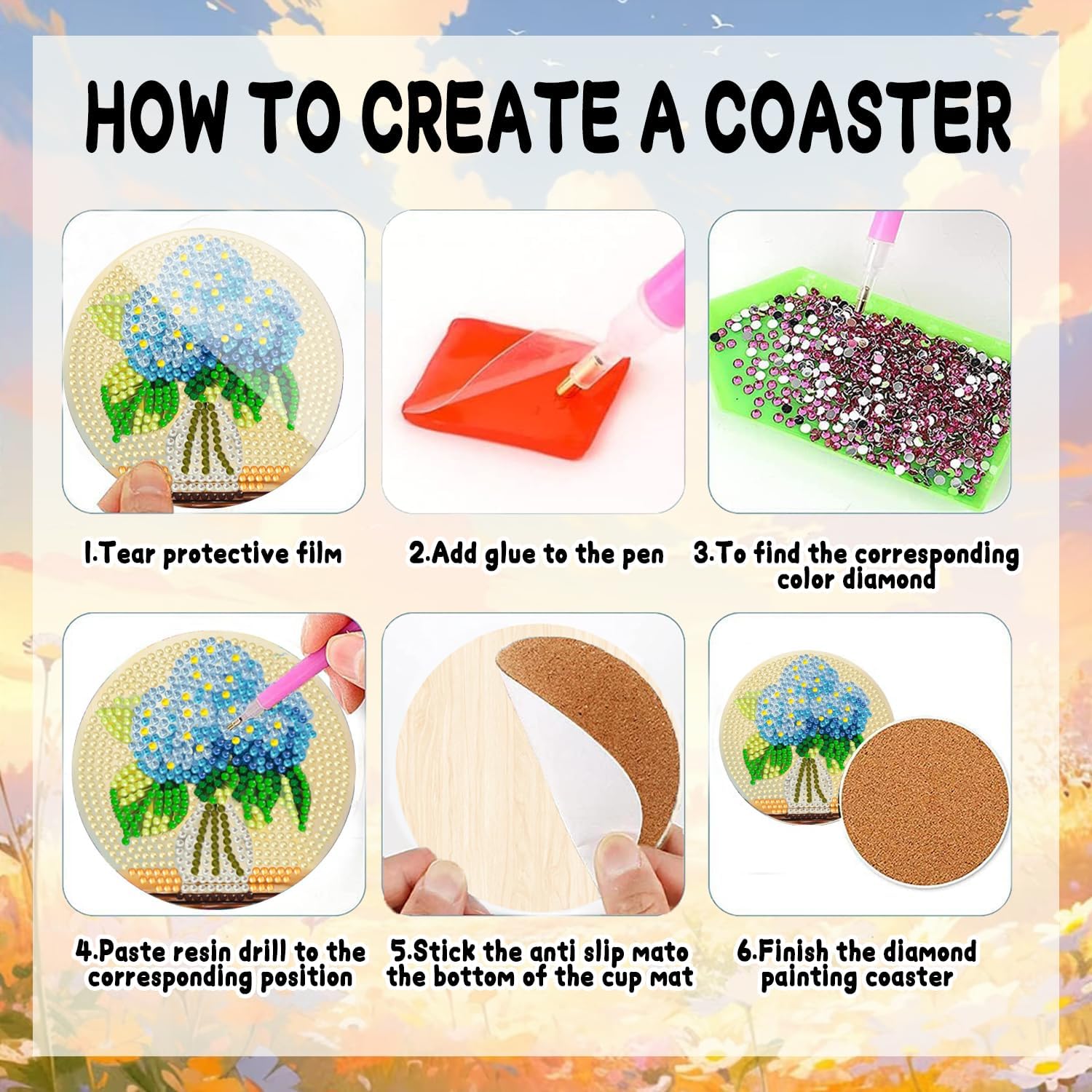 - Great Choice: diamond art coasters kit each kit offers a variety of colors to choose from, enabling you to create stunning diamond art paintings and diamond art supplies tailored to your taste,you can send it to your friends or family members on mother's day birthday, christmas and new year, you can trust that our commitment to you doesn't stop at the point of purchase, If you have any problem about the product, please contact us directly