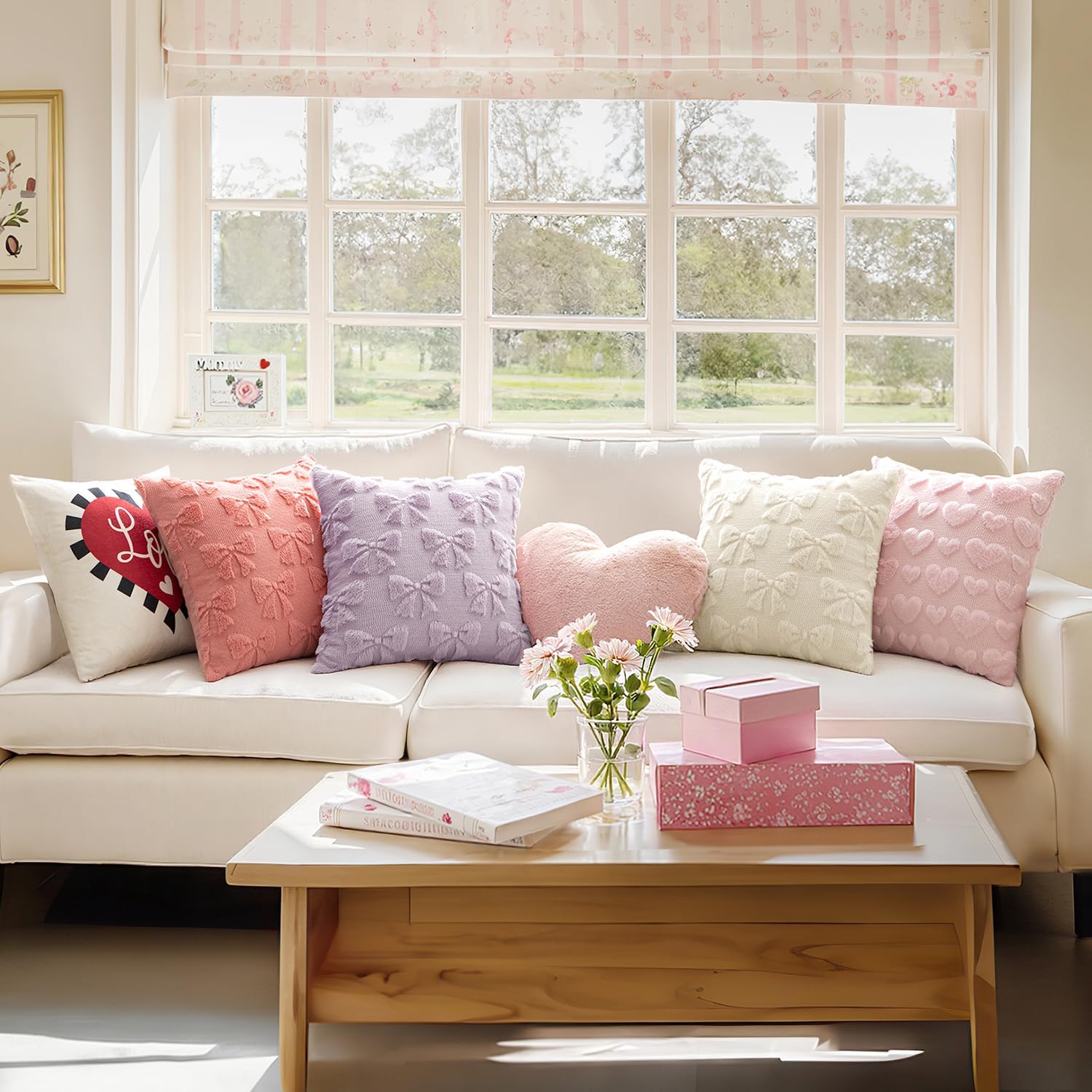 MIULEE Light Purple Bow Pillow Covers Coquette Room Decor Aesthetic Set of 2 Decorative Cute Girl Throw Pillow Soft Plush Faux Pillowcase for Girl Bed Couch Sofa,20x20 Inch