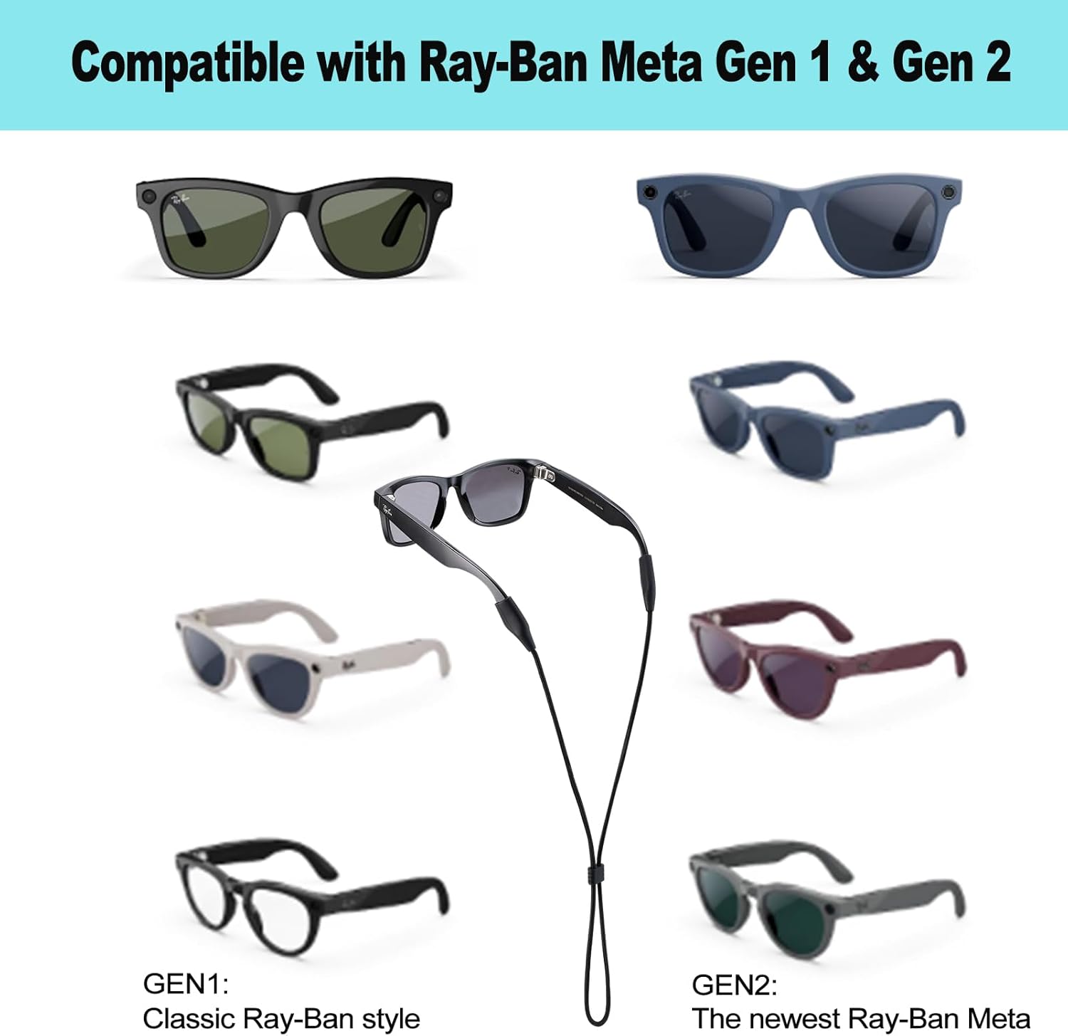 - Designed for Meta Ray-Ban and Wide Frame Glasses: This eyeglass strap with soft silicone ends design keeps your smart eyewear secure and prevents slips, drops, and loss during daily wear or outdoor activities. Never worry about losing your expensive glasses again! our latest upgrade.