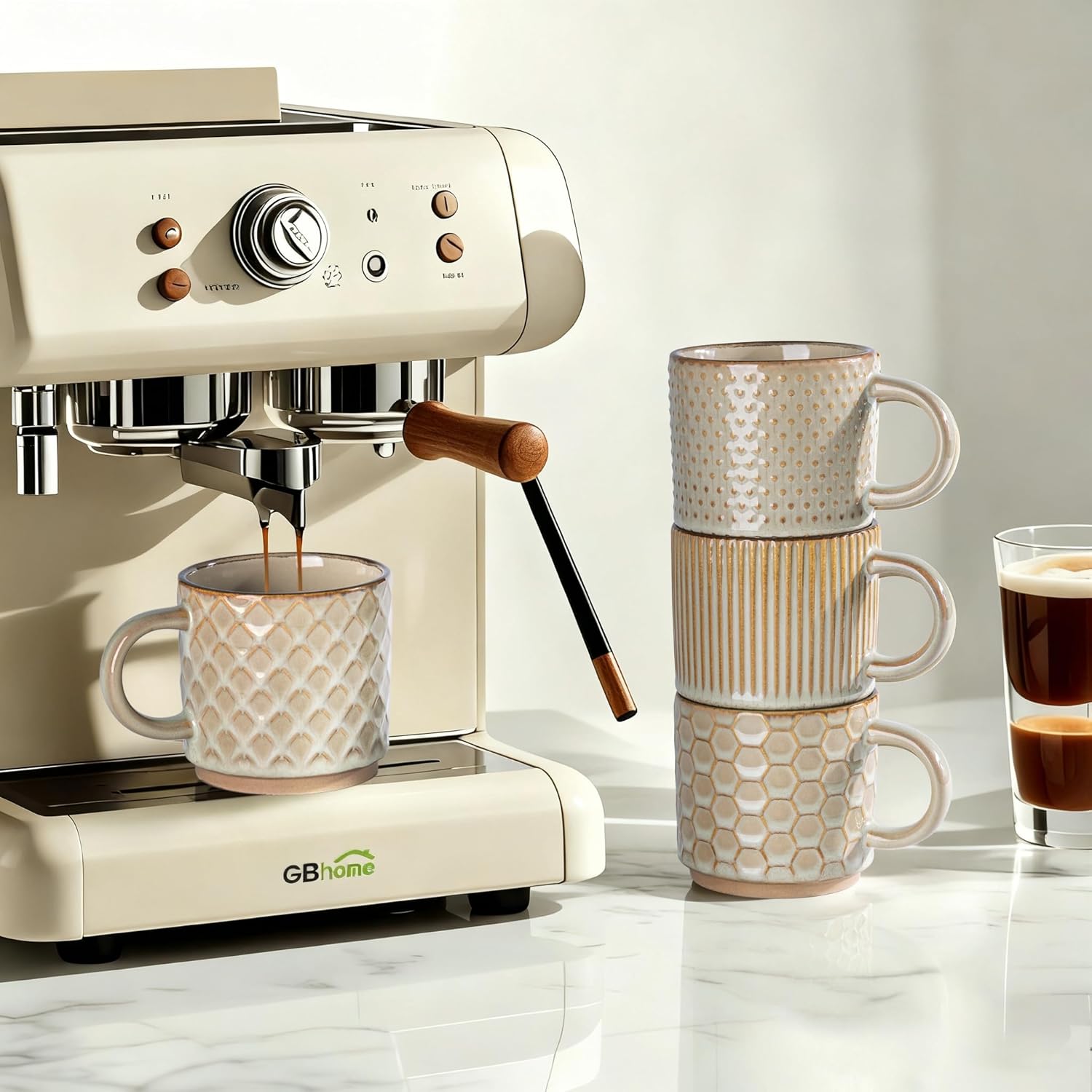 GBHOME 6OZ Stackable Coffee Mugs, Ceramic Coffee Mugs with Texture Patterns for Man,Woman,Dad,Mom, Modern Coffee Cups Set of 4 for Espresso/Cappuccino. Dishwasher&Microwave Safe