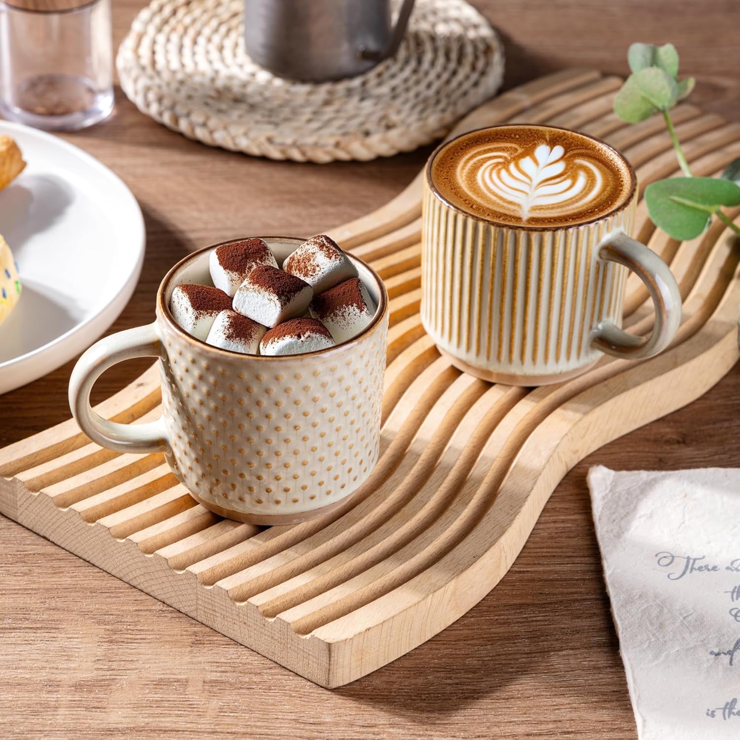 - Stackable and Modern Design: These ceramic mugs feature a beautiful embossed texture design, the smooth rim ensures a comfortable drinking experience, the stackable design allows for easy storage and helps save space in your kitchen.