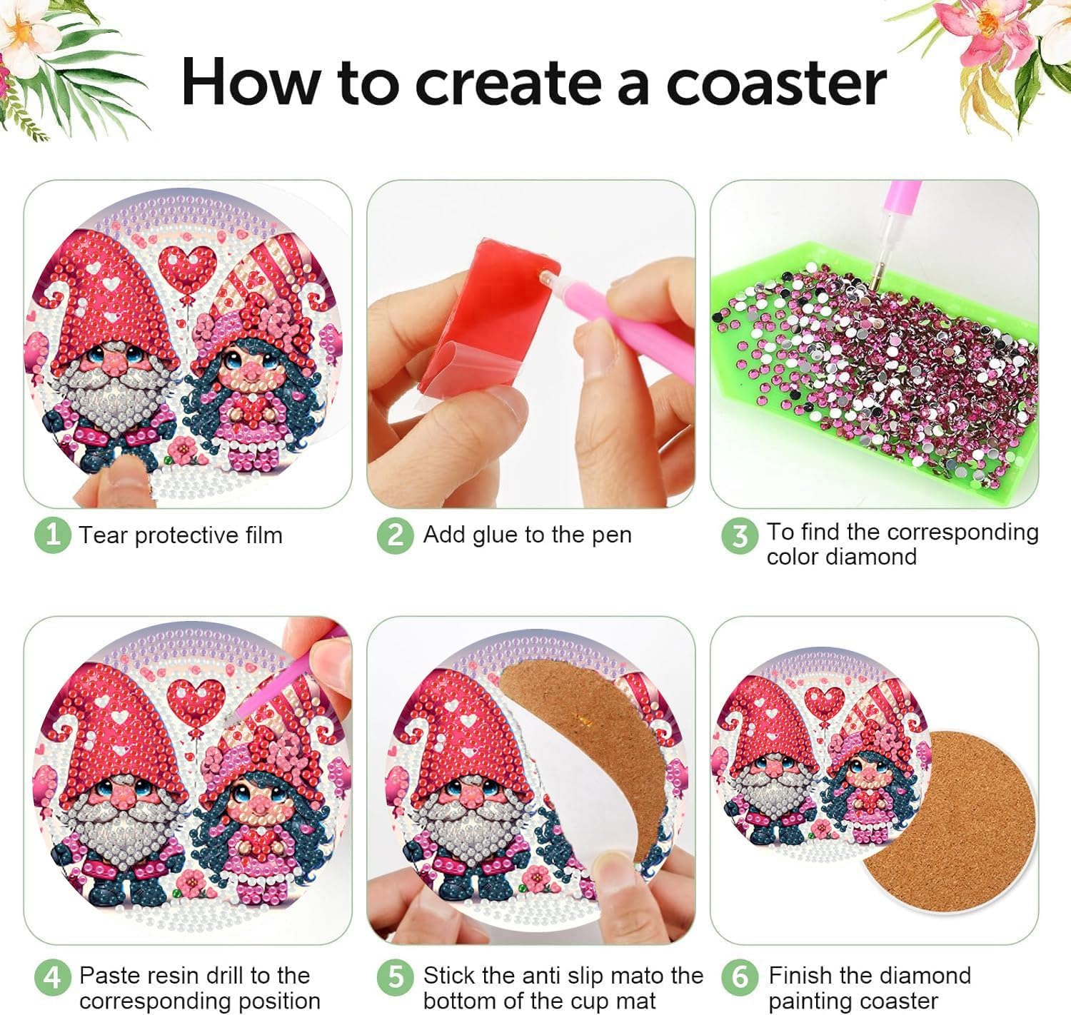 - Gnomes Diamond Art Coasters Kits Easy to operate: The Craft Supplies Kits come with a diamond painting tool that allows you to easily complete 8 pcs coasters. First, remove the protective film from the coasters, then find the rhinestones you need according to the numbers/letters on the coasters (the corresponding numbers/letters are marked on the bag) and start making them.Easy to use and suitable for beginners.