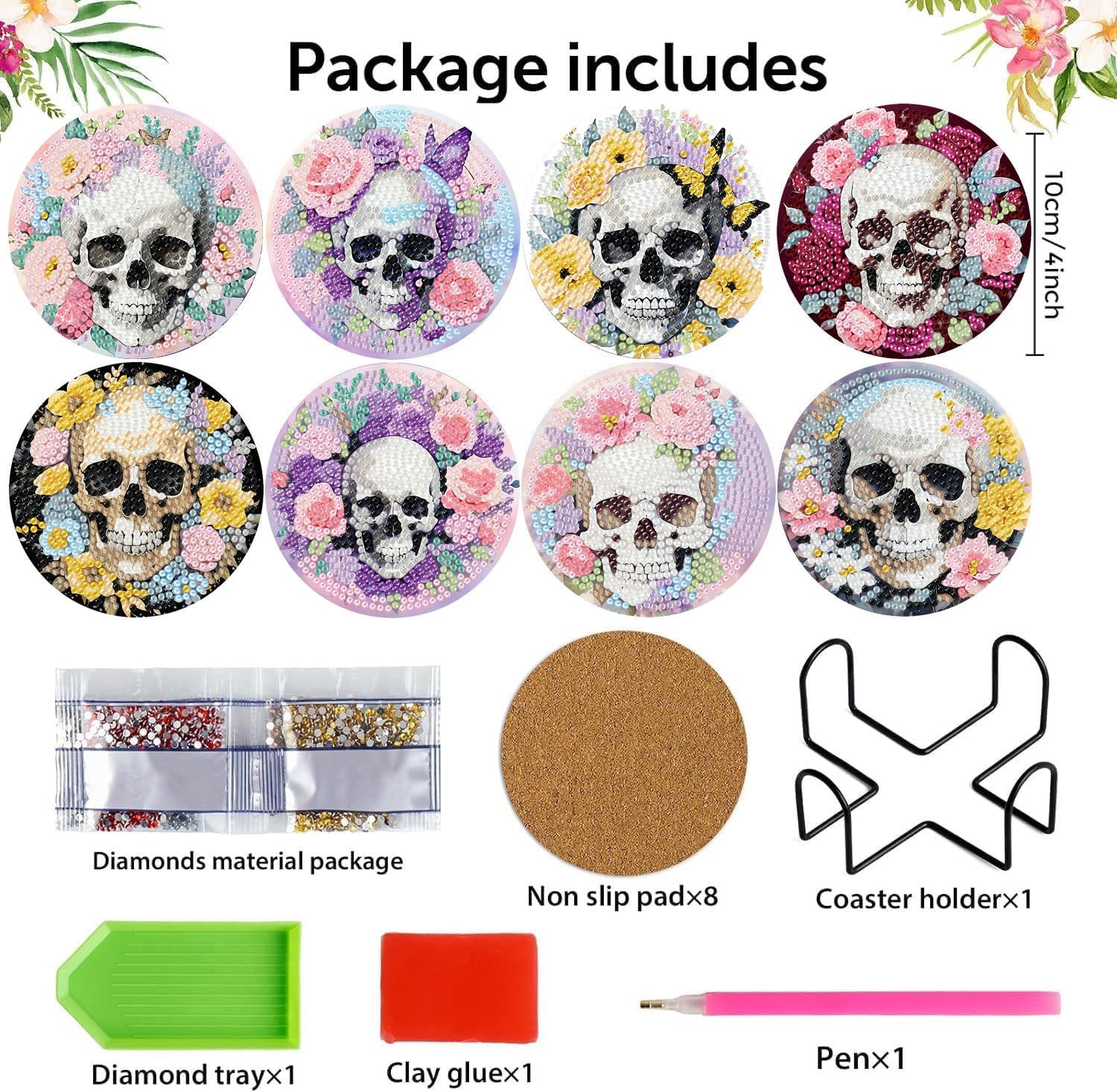 - Skull Theme Diamond Art Coasters Premium Material: Our diamond coasters are made of thickened high-quality wood. The pattern and numbers are clear and easy to read. It has strong adhesion, which can firmly stick the rhinestones on the coaster and is not easy to fall off.