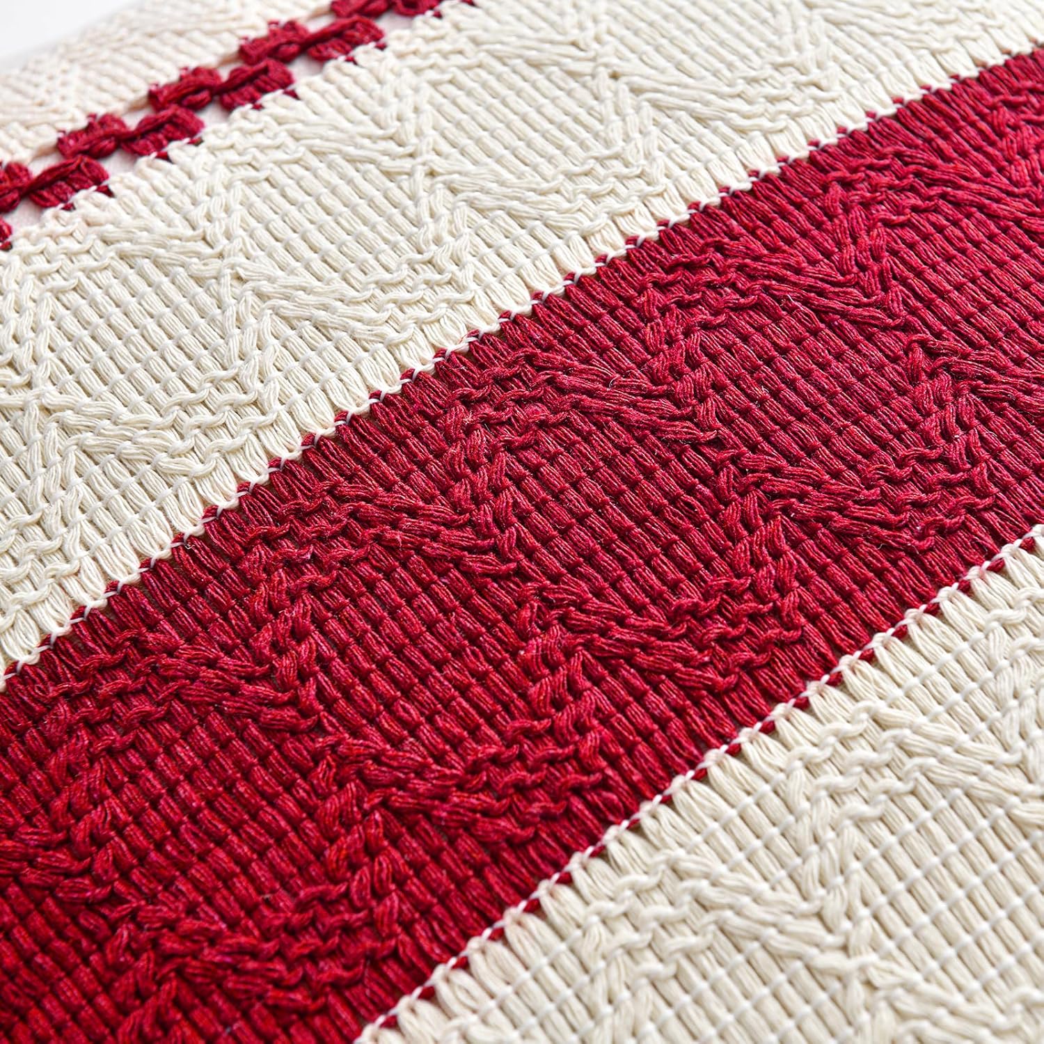 Fancy Homi Set of 2 Boho Red Decorative Throw Pillow Cover 16x16 Inch for Couch Bed Sofa, Aesthetic Modern Organic Farmhouse Home Decor, Soft Cotton Cute Accent Macrame Woven Cushion Case