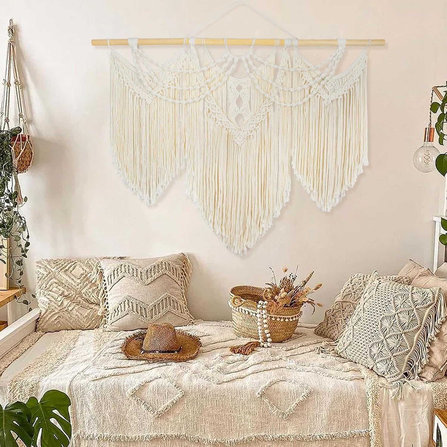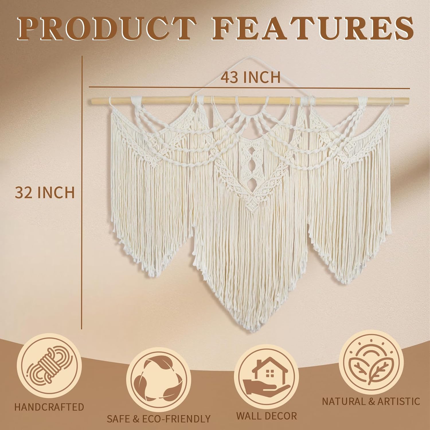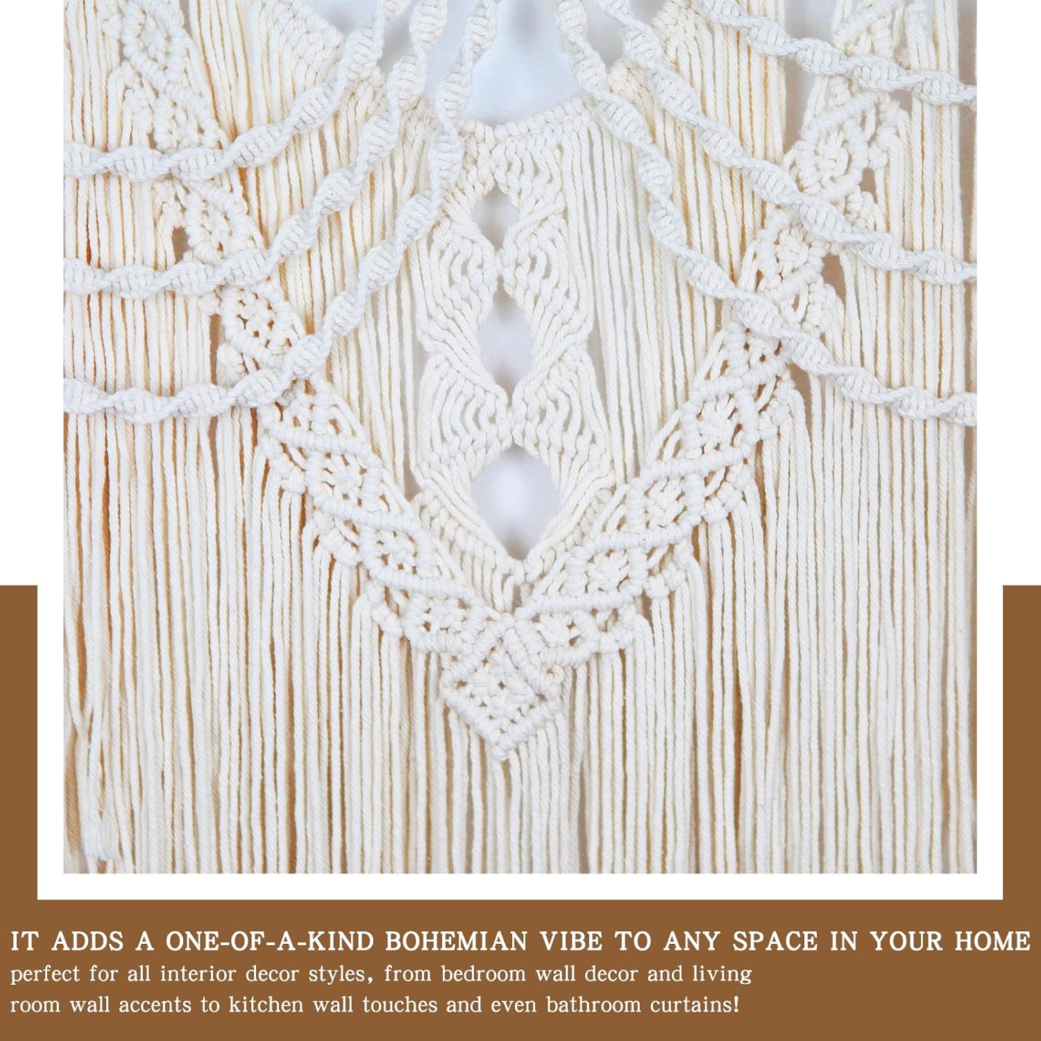 - 【Handcrafted Boho Wall Hanging】 Meticulously handwoven from premium natural cotton rope, this 43"x32" macrame features intricate bohemian patterns with sustainable wooden beads. Durable craftsmanship ensures timeless elegance as living room wall decor or bedroom tapestry.