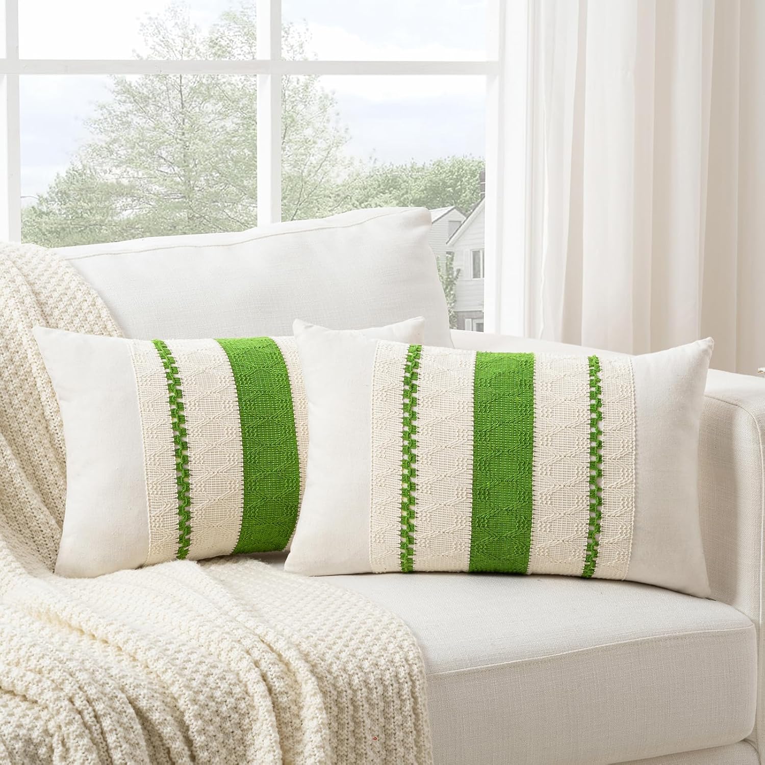 Fancy Homi Set of 1 Boho Lime Green Lumbar Decorative Throw Pillow Cover 12x20 Inch for Couch Bed Sofa Chair, Modern Organic Farmhouse Home Decor, Soft Cotton Cute Accent Rectangle Cushion Case