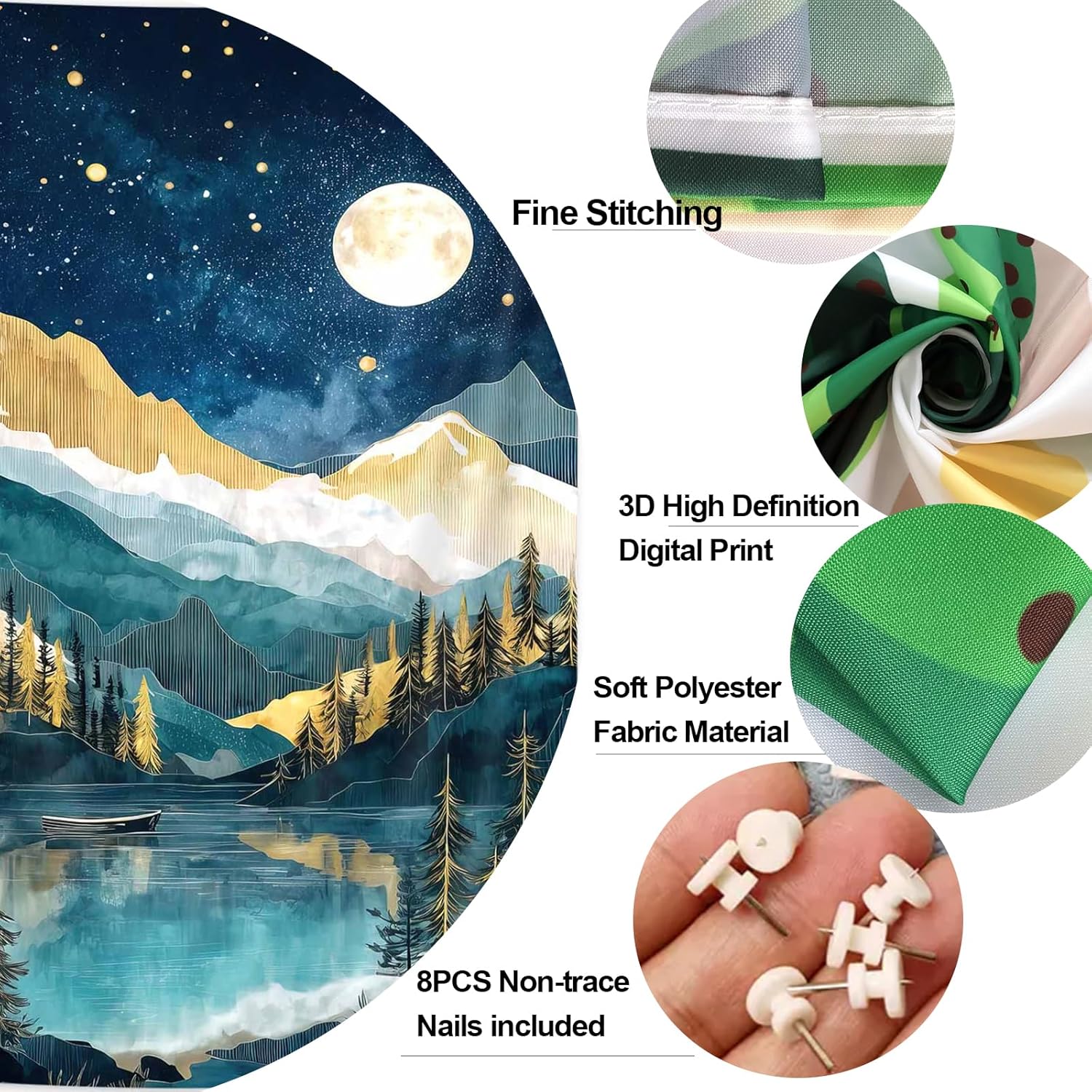 DYNH Boho Mountain Vertical Tapestry, Nature Forest Tree Lake Moon Tapestries, Bohemian Minimalist Mid Century Night Tapestry Wall Hanging for Bedroom College Dorm Asthetic Home Decor,50X60Inches