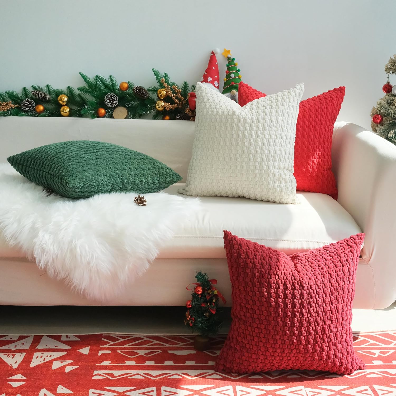 JOJUSIS Pack of 4 Christmas Decorative Throw Pillow Covers Farmhouse Boho Home Decor Striped Corduroy Square Pillowcases 24 x 24 Inch Christmas Red Green Burgundy Cream White