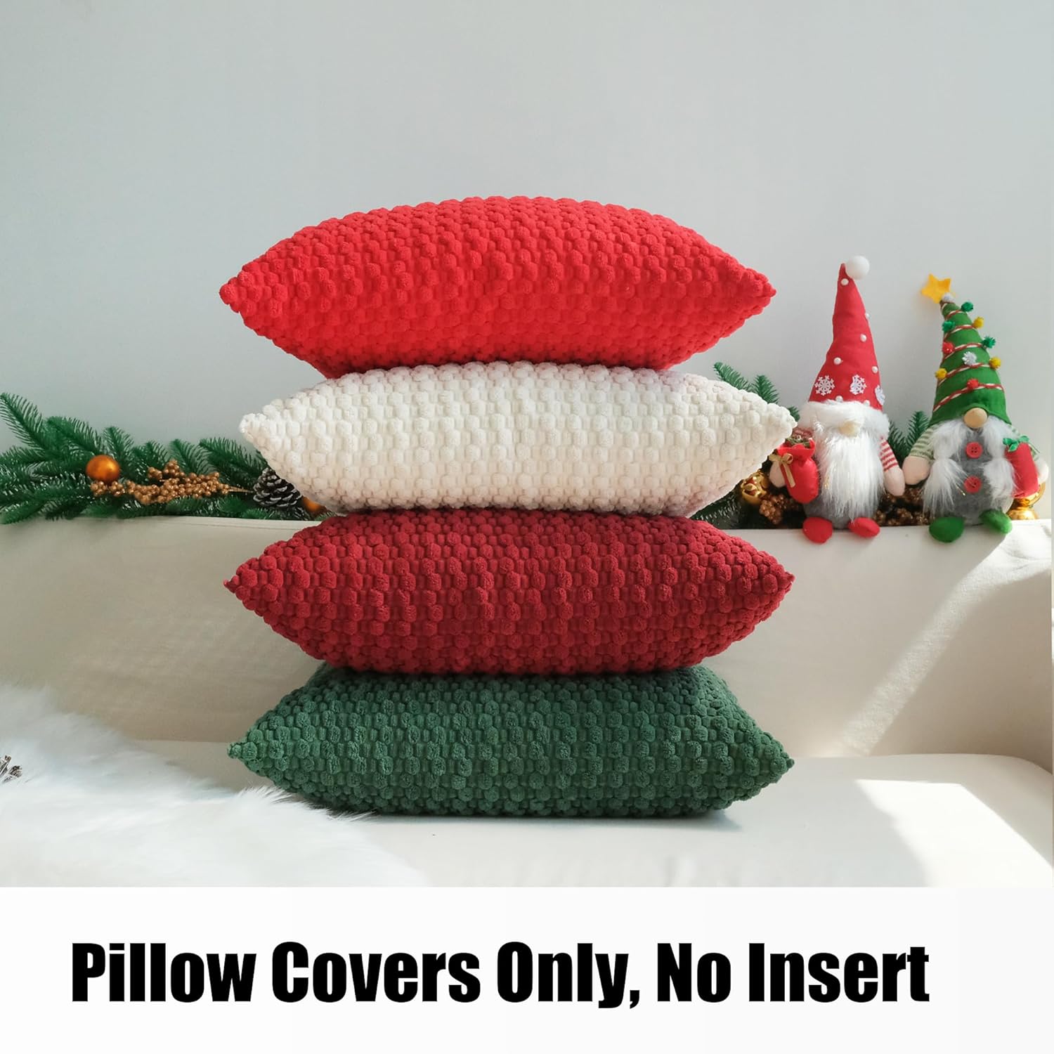 JOJUSIS Pack of 4 Christmas Decorative Throw Pillow Covers Farmhouse Boho Home Decor Striped Corduroy Square Pillowcases 20 x 20 Inch Christmas Red Green Burgundy Cream White