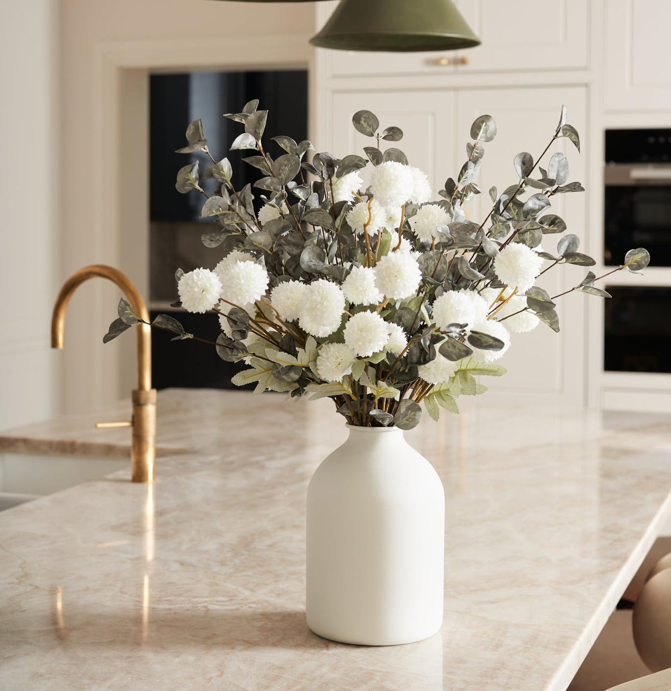 - Package Includes: 10 Kiku Flowers + 5 Lush Eucalyptus Bunches – Perfect for Instant Floral Arrangements (No Assembly Needed!)