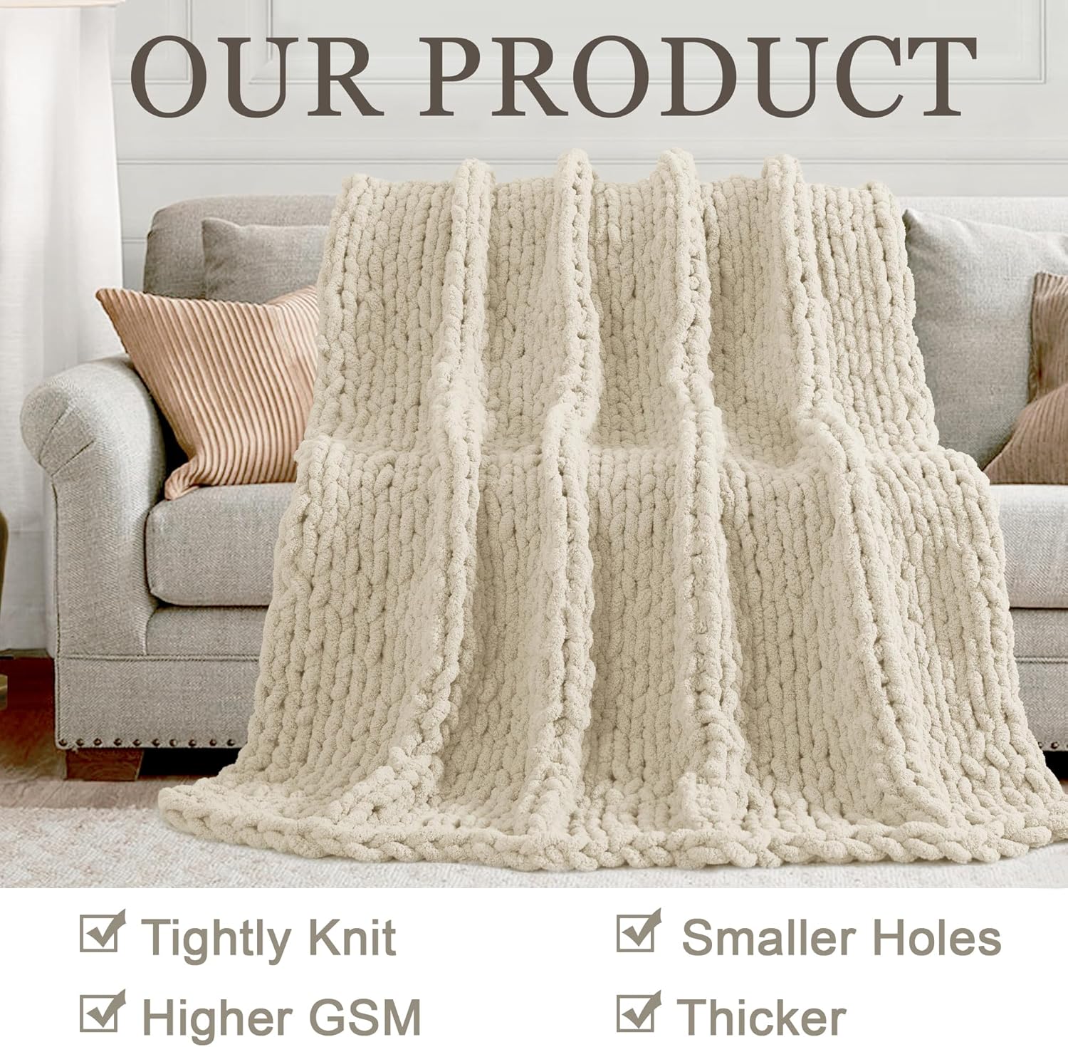- Cozy and Stylish Home Accessory: Elevate your home decor with this Chunky Knit Throw Blanket. Its luxurious and chunky knit design adds a cozy and stylish touch to any living space, creating a warm and inviting atmosphere.